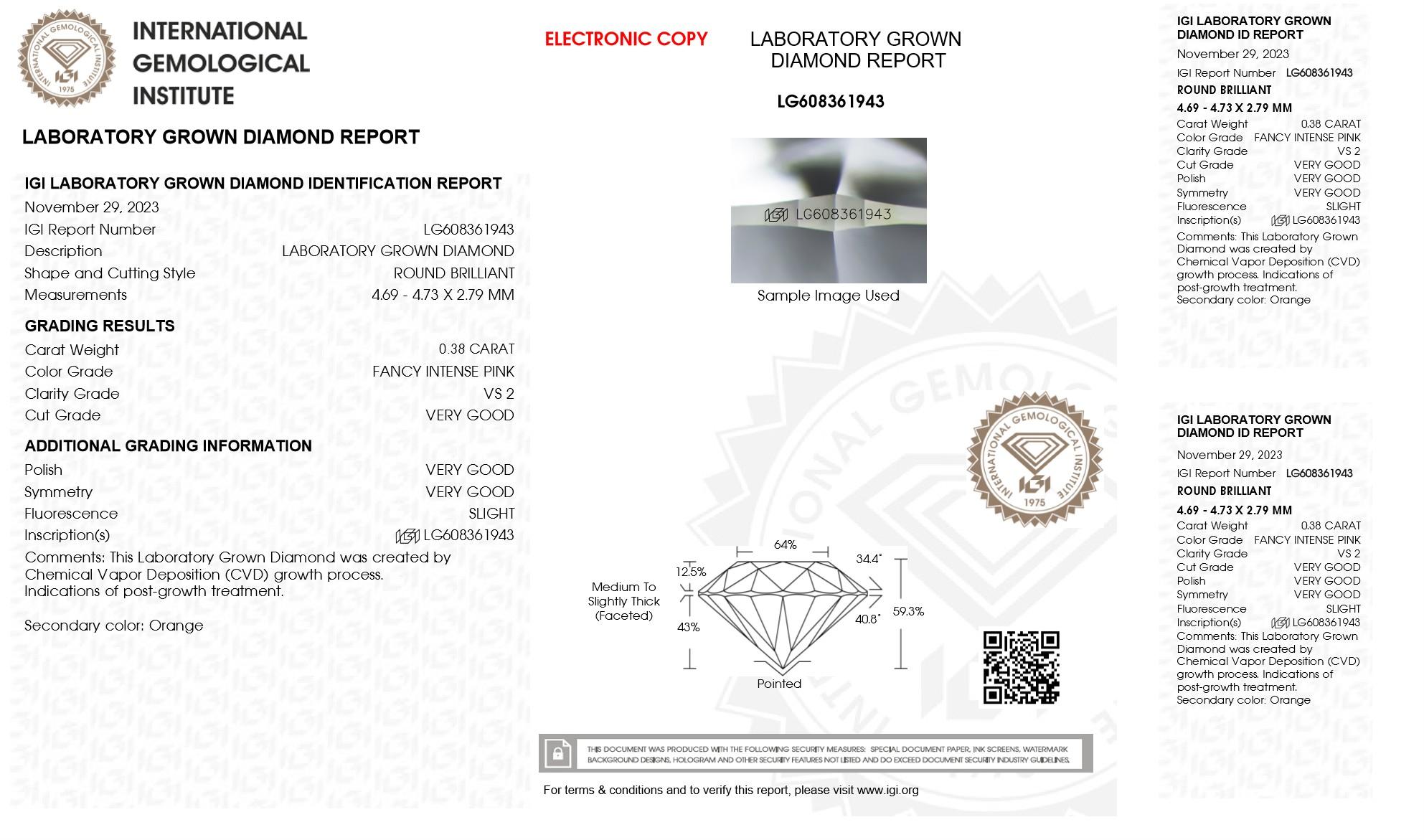 .38 Carats Lab Grown Pink Diamond Loose VS2 | (IGI Cert)