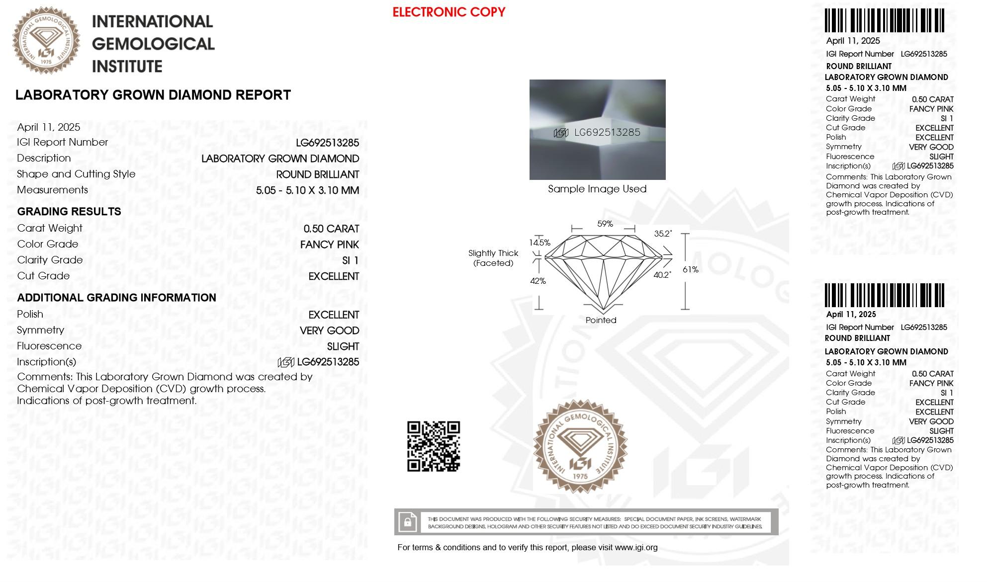 .50 Carats Lab Grown Pink Diamond Loose SI1 | (IGI Cert)