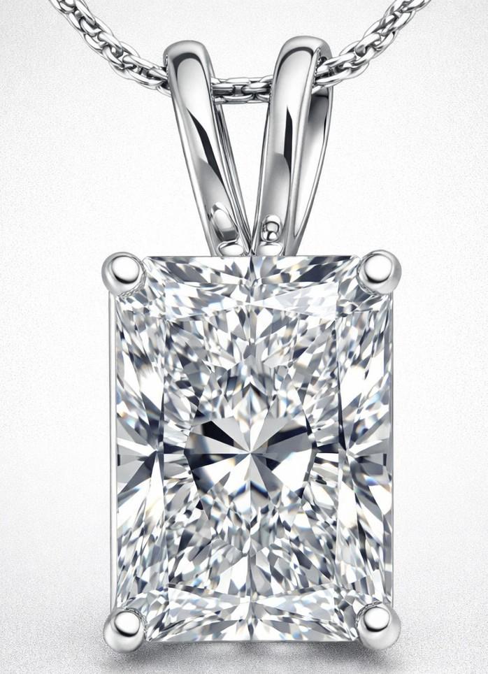 One New Radiant Cut Diamond Solitaire Pendant. Mounting is Made of Sterling Silver.