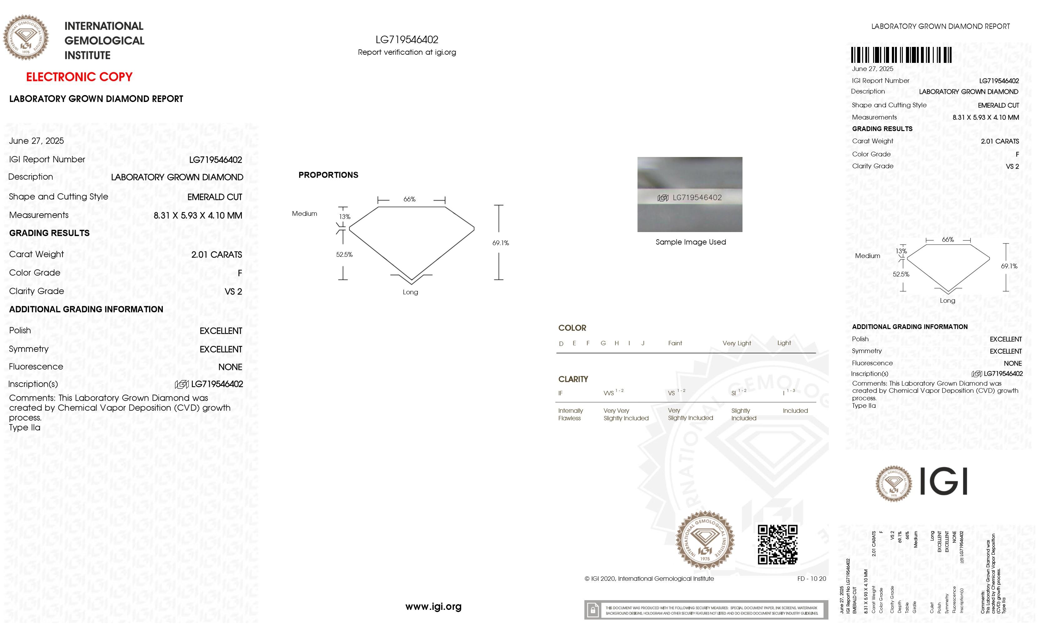 2.01 Carats Lab Grown Diamond Loose F, VS2 | $2,800 Estimated Retail Value (UGL & IGI Certs)