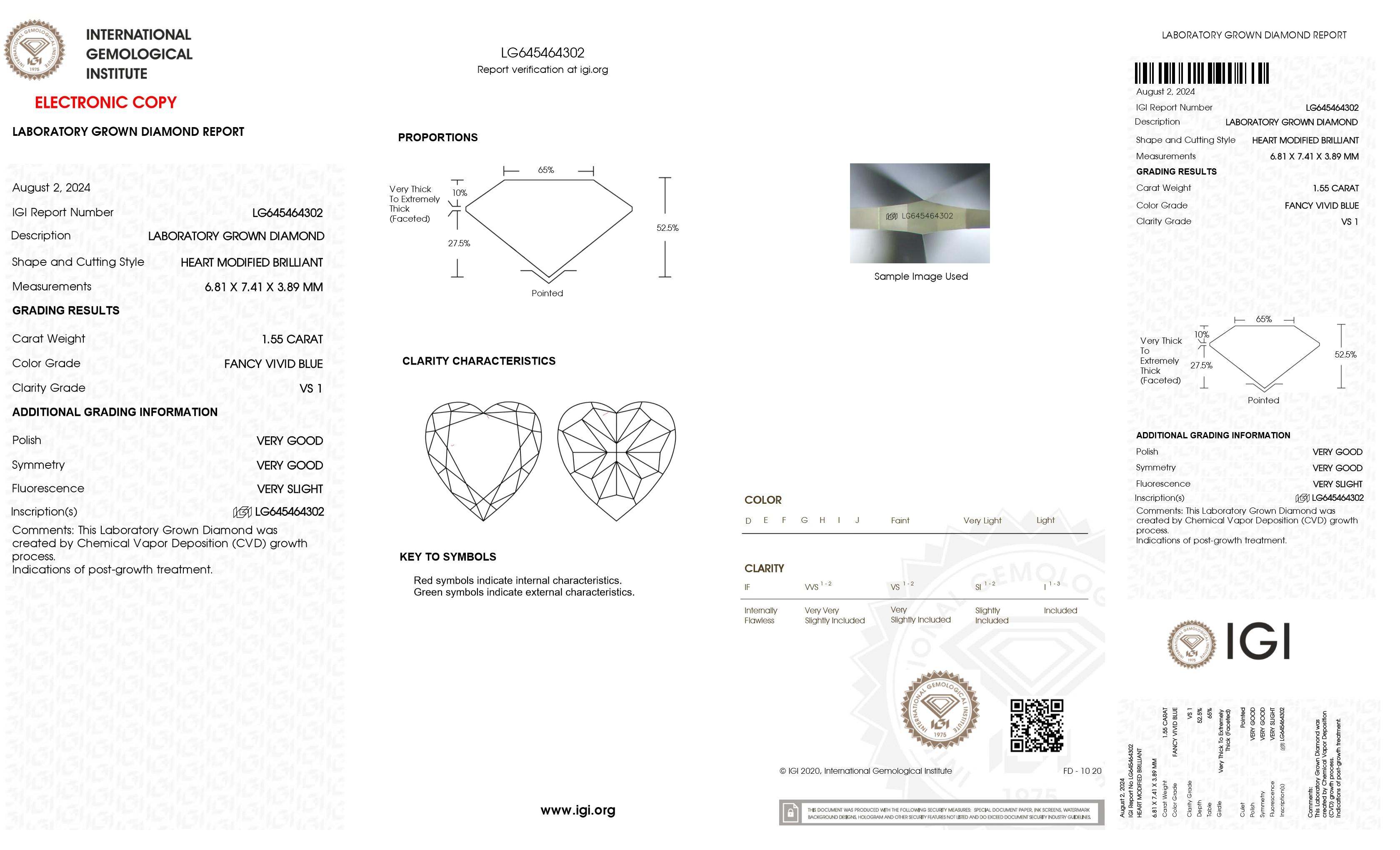 1.55 Carats Lab Grown Blue Diamond Loose VS1 | $3,100 Estimated Retail Value (UGL & IGI Certs)