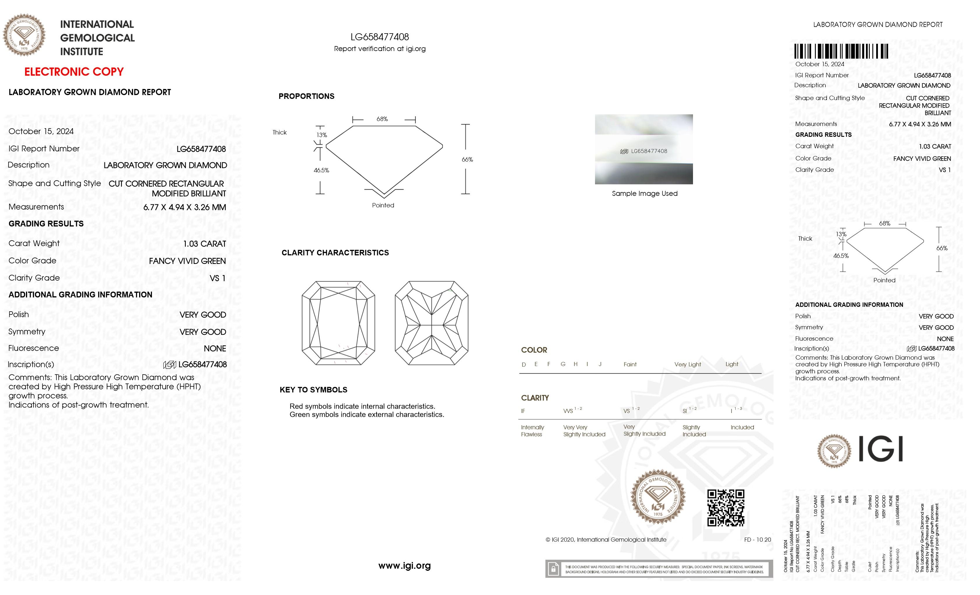 1.03 Carats Lab Grown Green Diamond Loose VS1 | $2,000 Estimated Retail Value (UGL & IGI Certs)