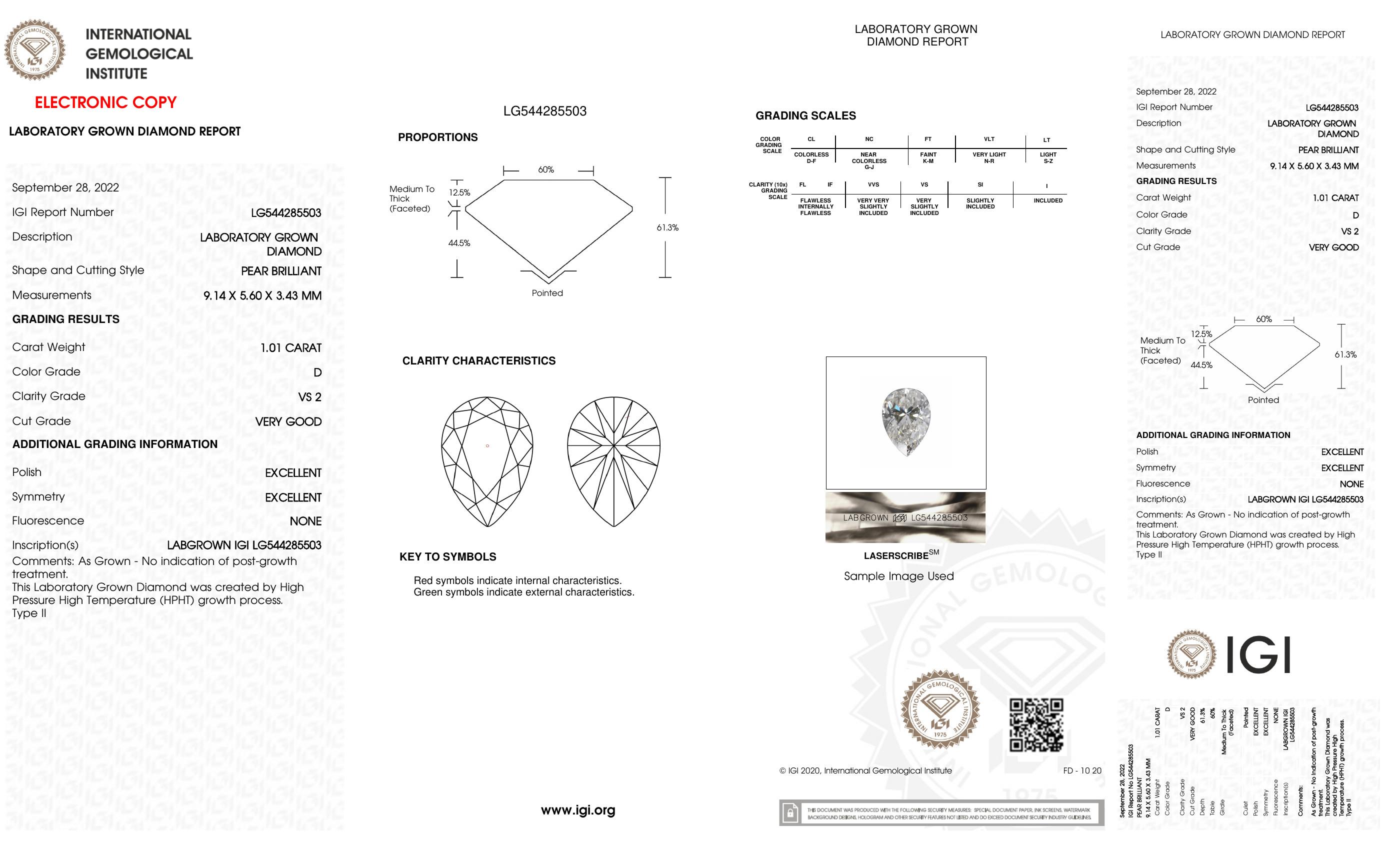 This piece includes paperwork from the International Gemological Institute (IGI).