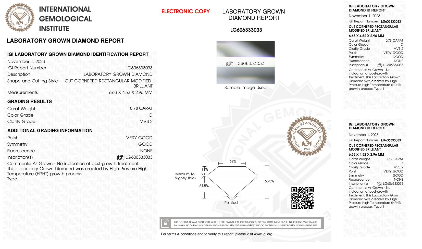 This piece includes paperwork from the International Gemological Institute (IGI).