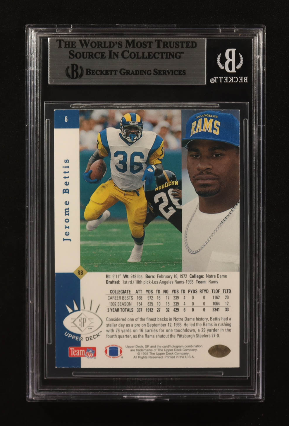 Jerome Bettis Signed 1993 Upper Deck Premier Prospects SP #6 RC (BGS)