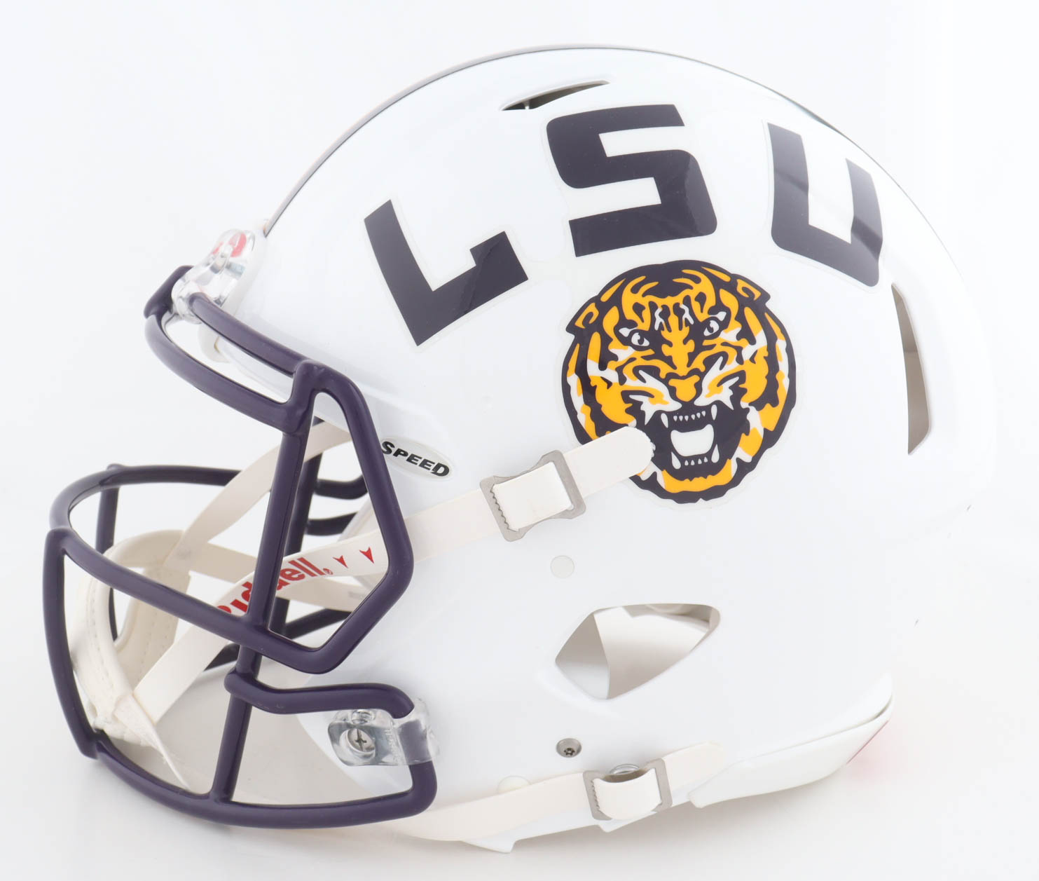 Riddell Louisiana State Tigers full-size authentic on-field Speed helmet. Hand-signed by Shaquille O'Neal (Los Angeles Lakers, HOF).