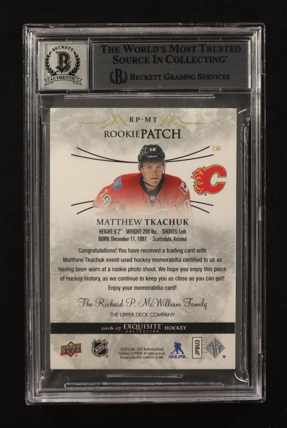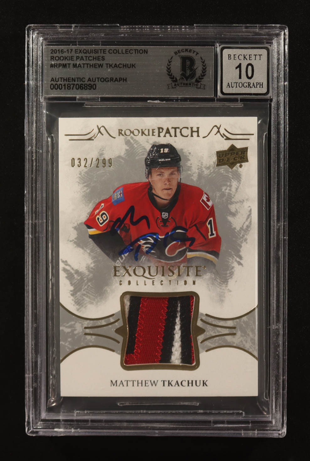 Matthew Tkachuk Signed 2016-17 Upper Deck Exquisite Collection Rookie Patches #RP-MT RC #032/299 (BGS | Autograph Graded BGS 10)