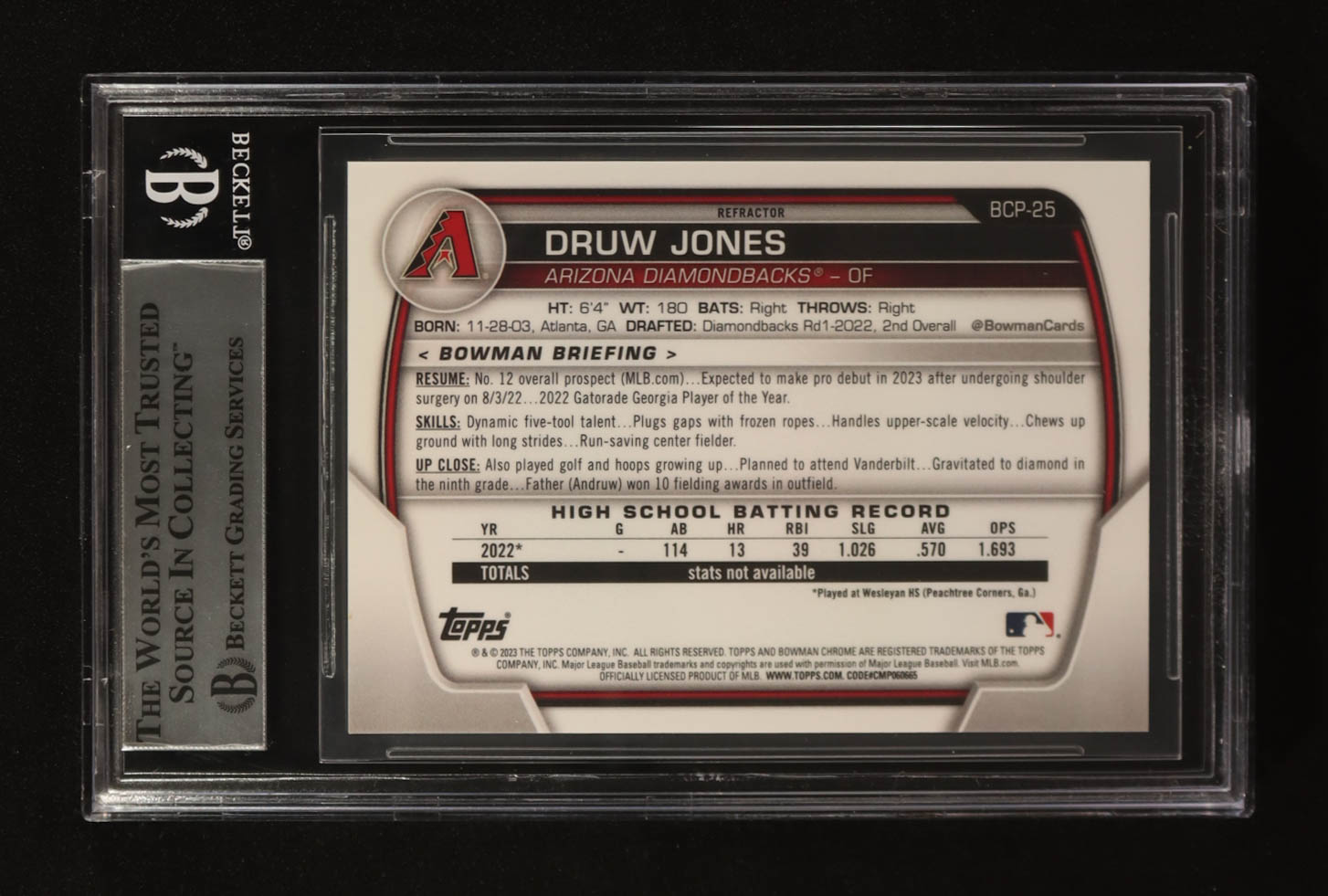 Druw Jones Signed 2023 Bowman Chrome Prospects Refractors #BCP-25 RC (BGS)
