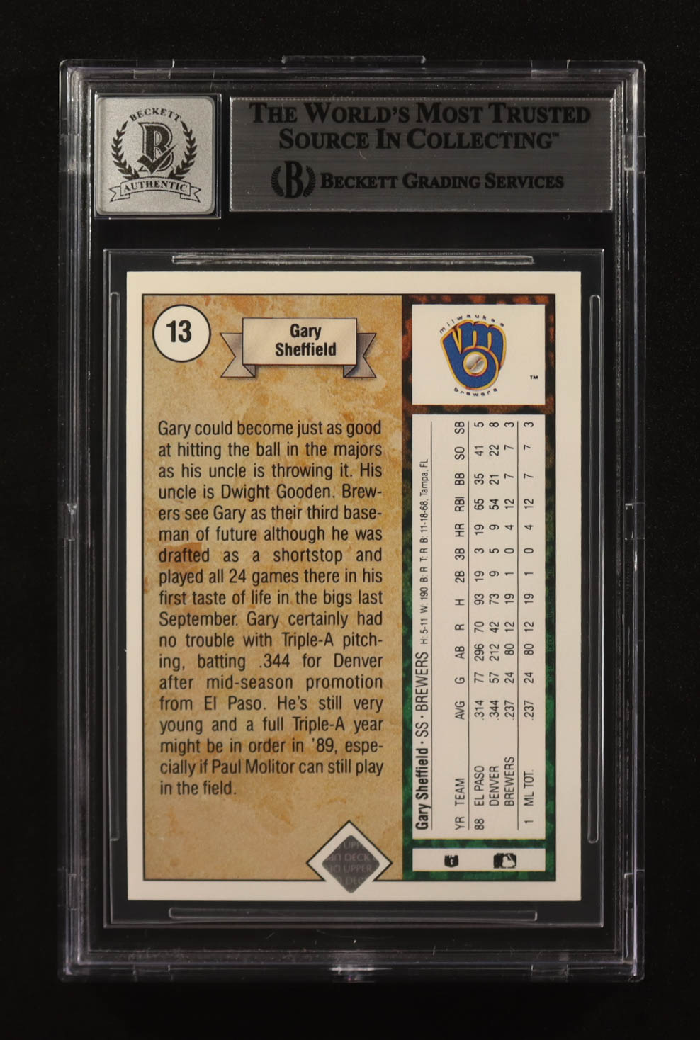 Gary Sheffield Signed 1989 Upper Deck COR #13 RC (BGS | Autograph Graded BGS 10)