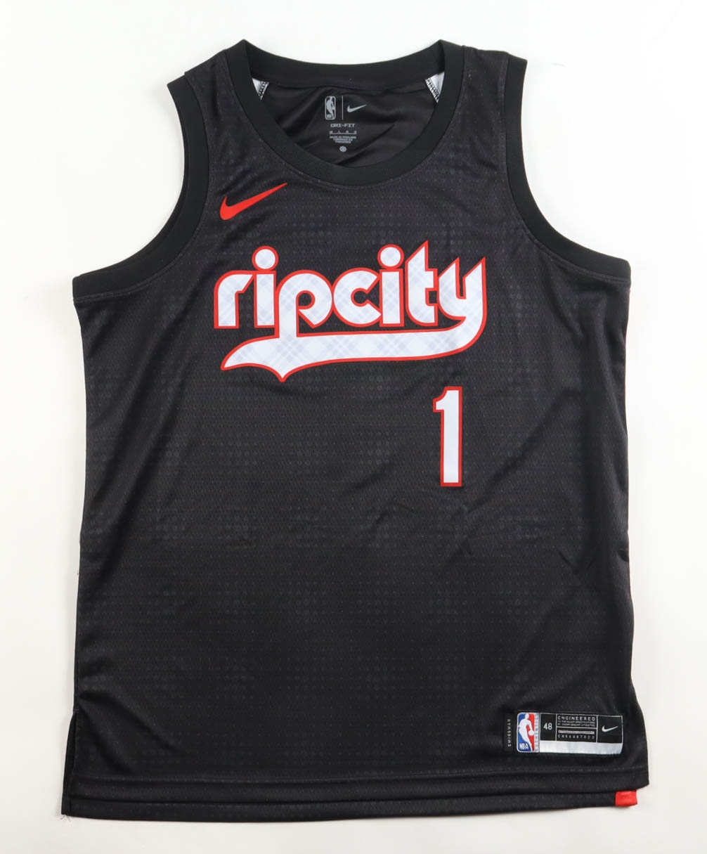Nike authentic jersey with everything pressed on, size LL. Hand-signed by Anfernee Simons.