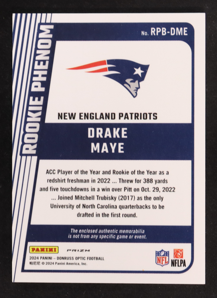 Drake Maye 2024 Donruss Optic Rookie Phenoms Blue Hyper #12 RC