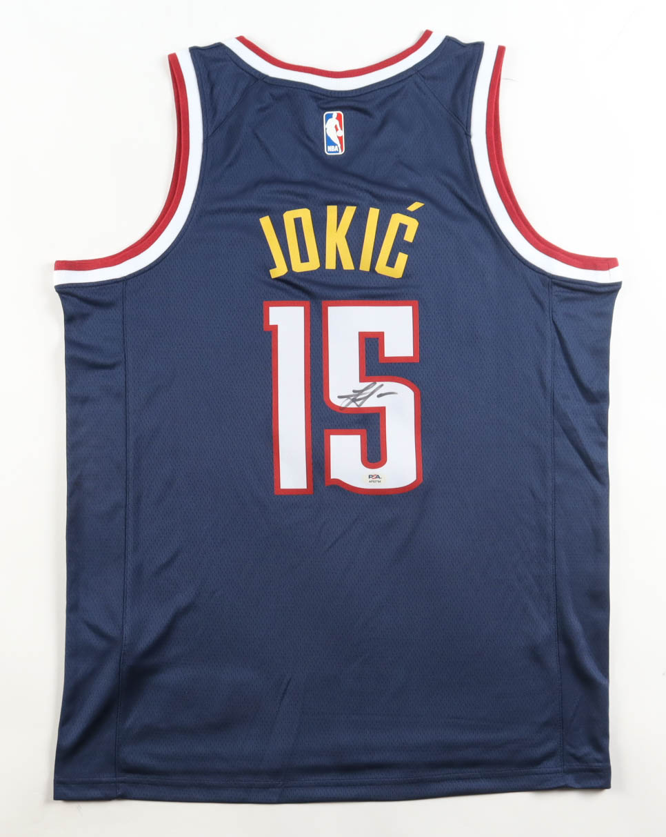 Nike authentic jersey with everything pressed on, size L. Hand-signed by Nikola Jokic.