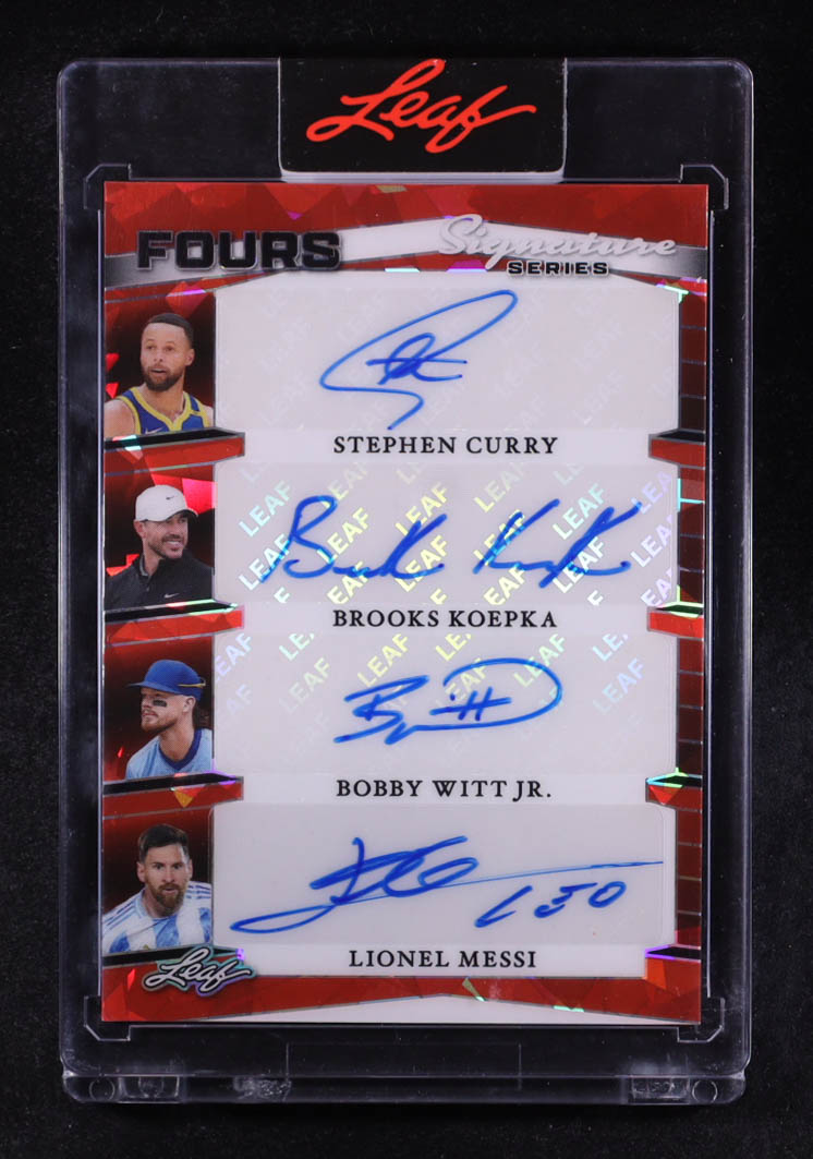 Curry / Koepka / Witt Jr. / Messi 2025 Leaf Signature Series FOURS Red Crystals #T47 #1/1