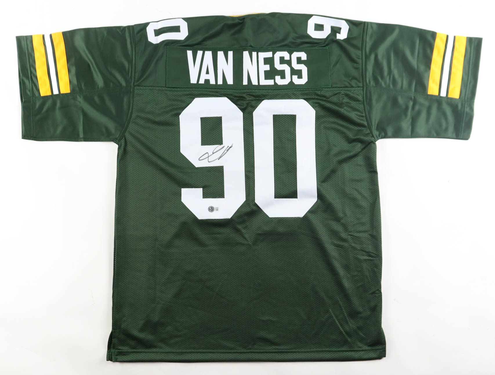 Custom jersey with everything sewn on, size XL. Hand-signed by Lukas Van Ness (Green Bay Packers).