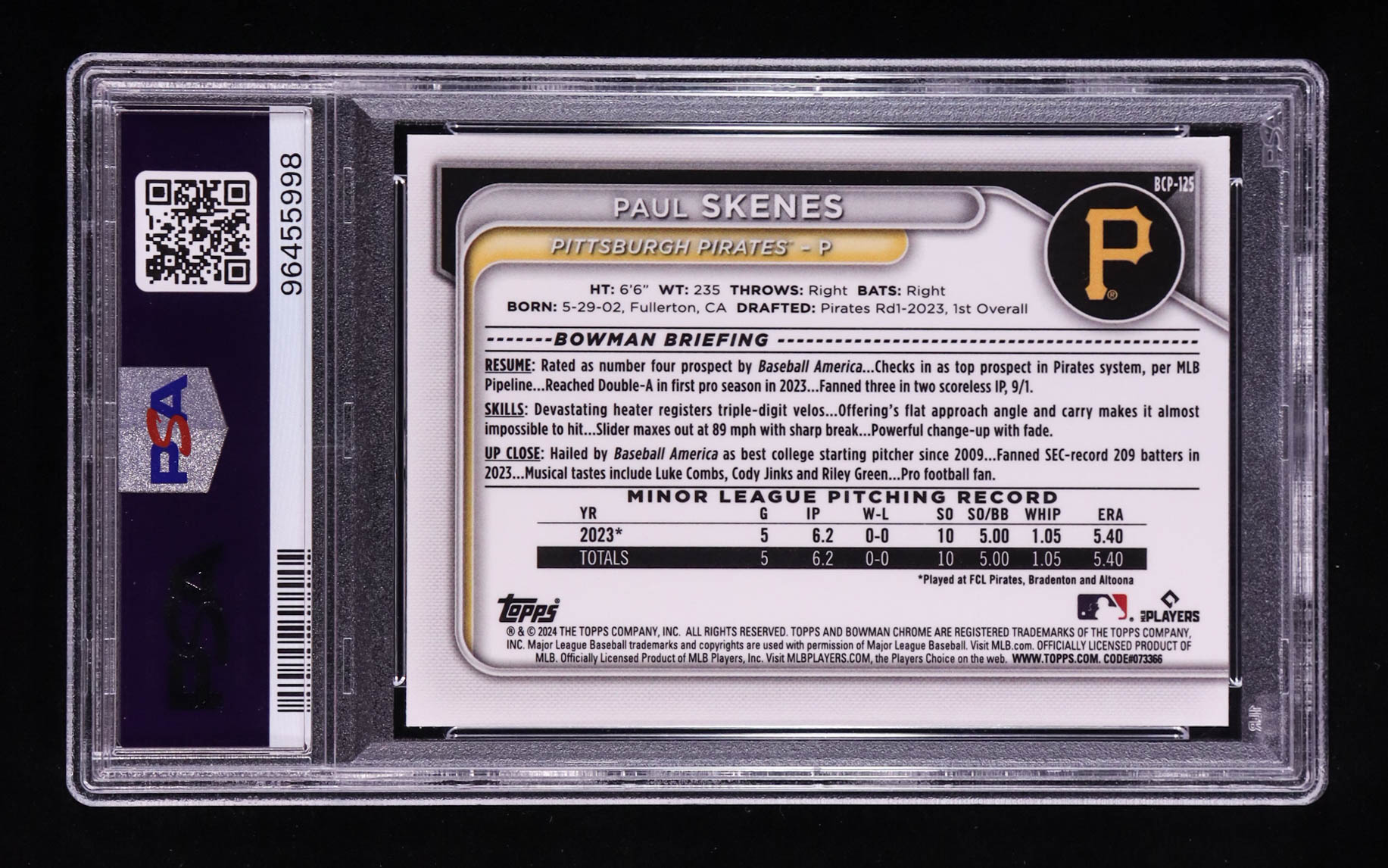 Paul Skenes 2024 Bowman Chrome Mega Box Prospects #BCP125 RC (PSA 9)