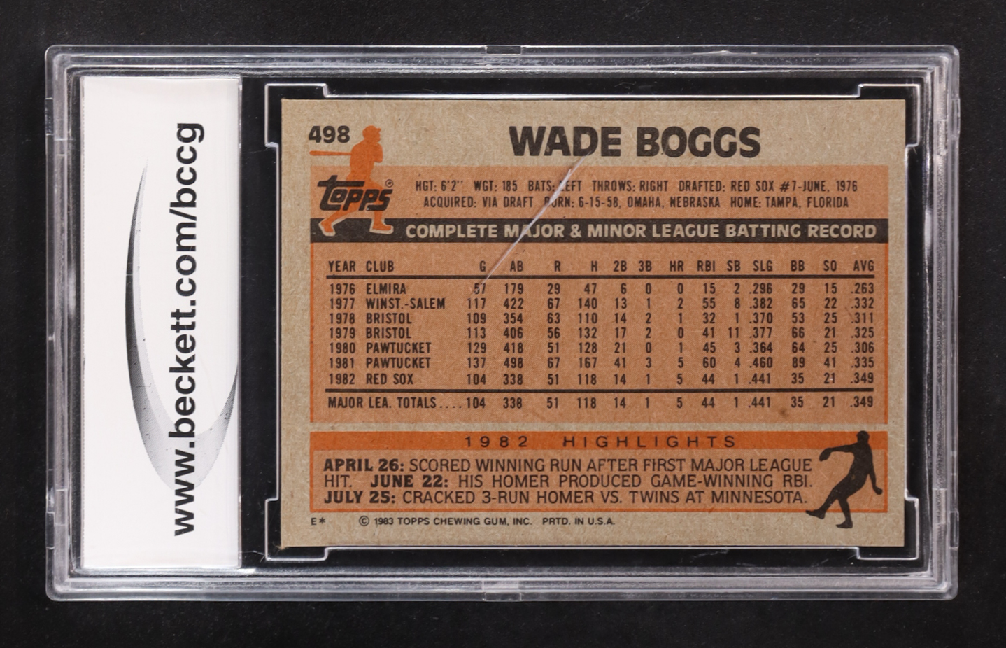 Wade Boggs 1983 Topps #498 RC (BCCG 10)