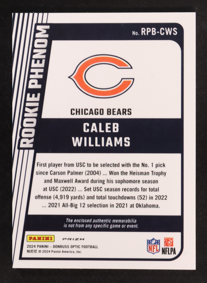 Caleb Williams 2024 Donruss Optic Rookie Phenoms Blue Hyper #1 RC