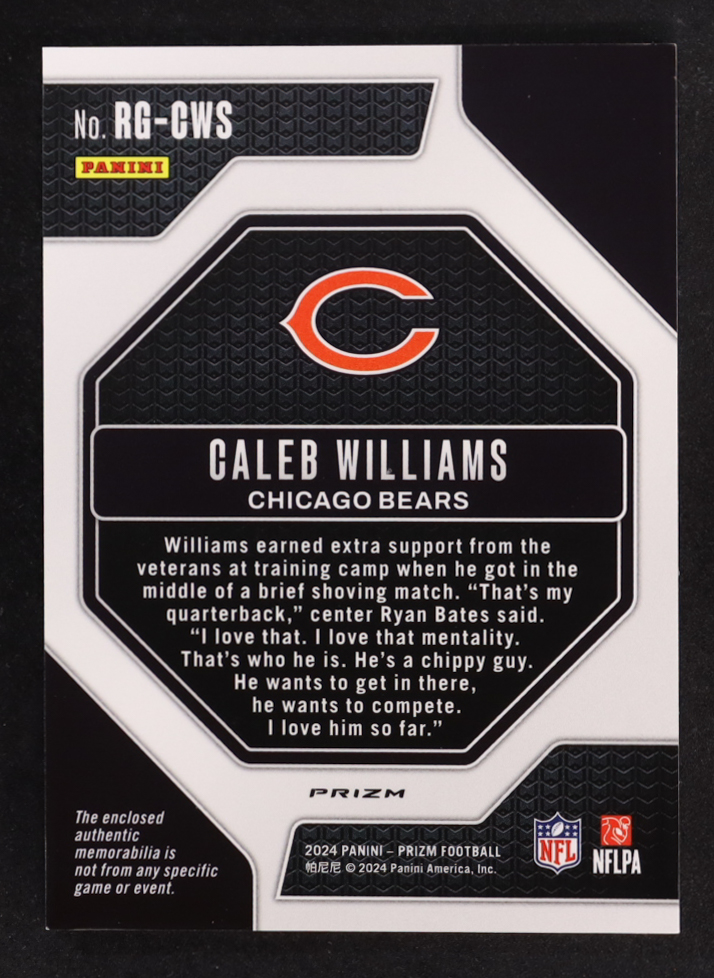 Caleb Williams 2024 Panini Prizm Rookie Gear Neon Green Pulsar #1 RC