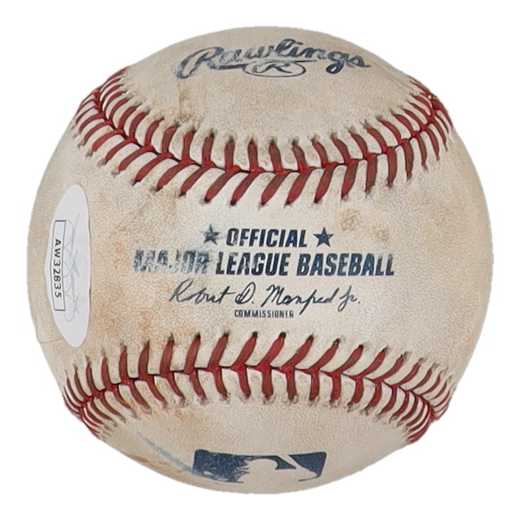 Rawlings Official Major League Baseball. Hand-signed by Luis Gonzalez (Arizona Diamondbacks). Please note, the ball is heavily stained and shows signs of wear and weathering.