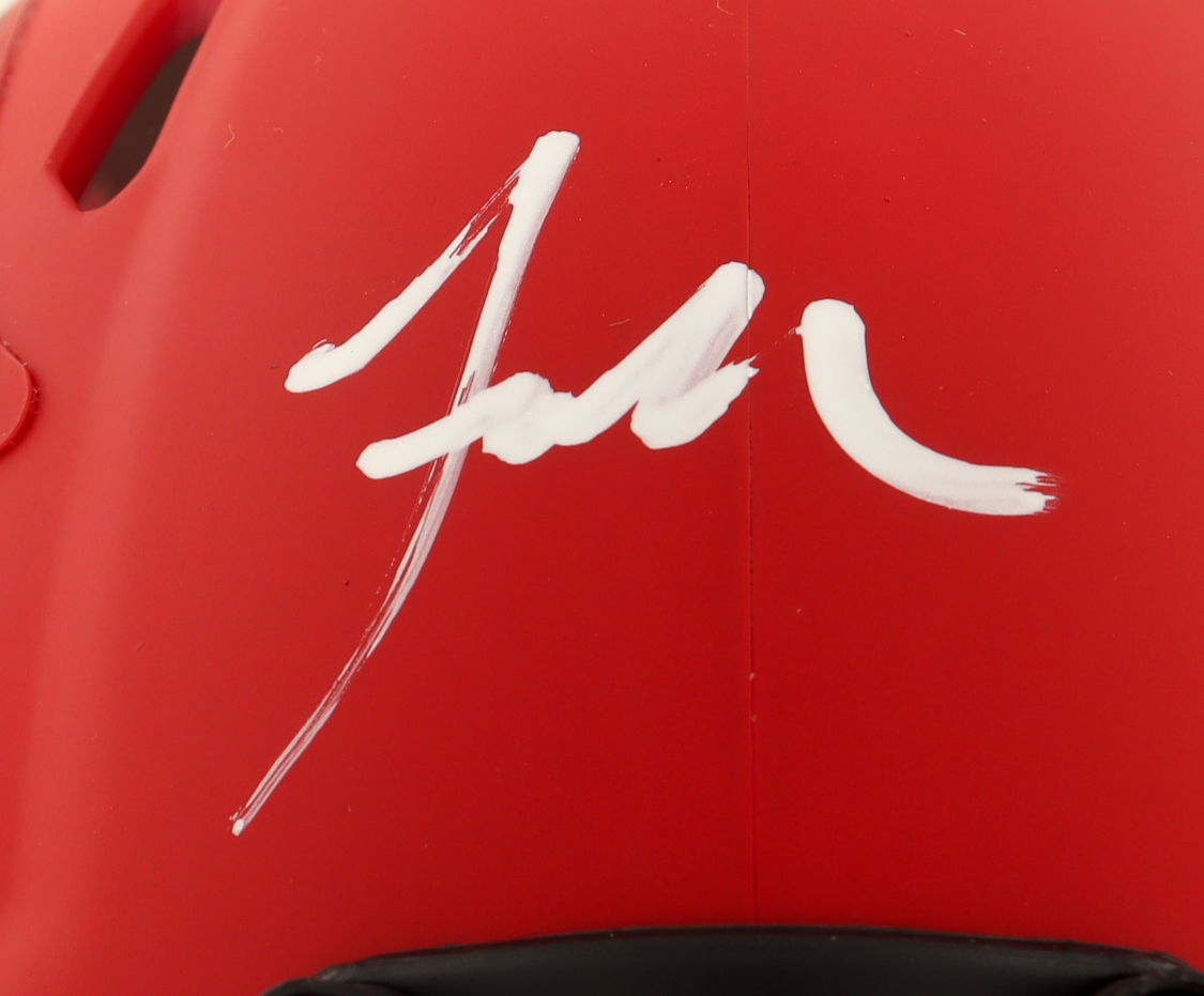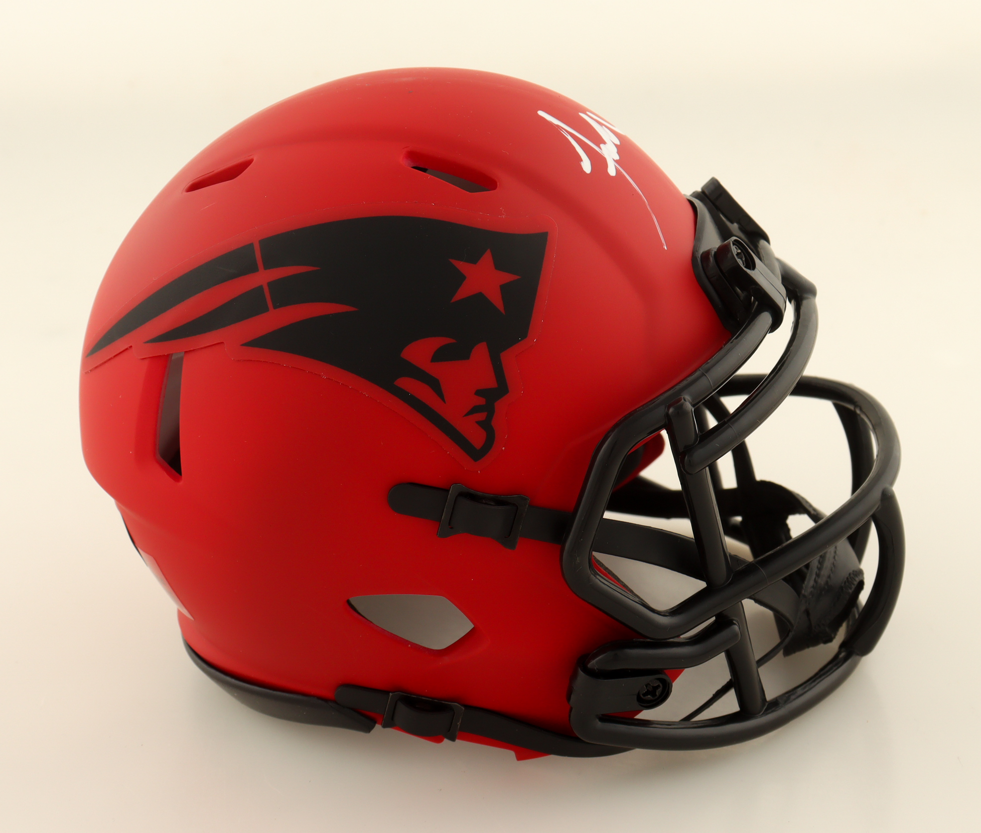 Riddell New England Patriots Rave Alternate speed mini helmet. Hand-signed by Jaylinn Hawkins. See photos for more details.