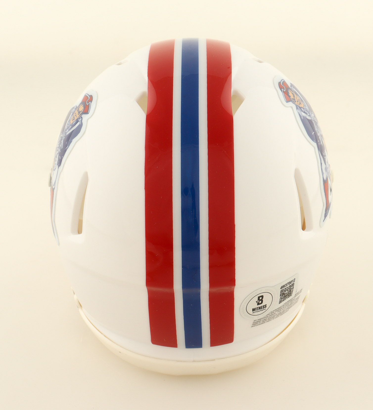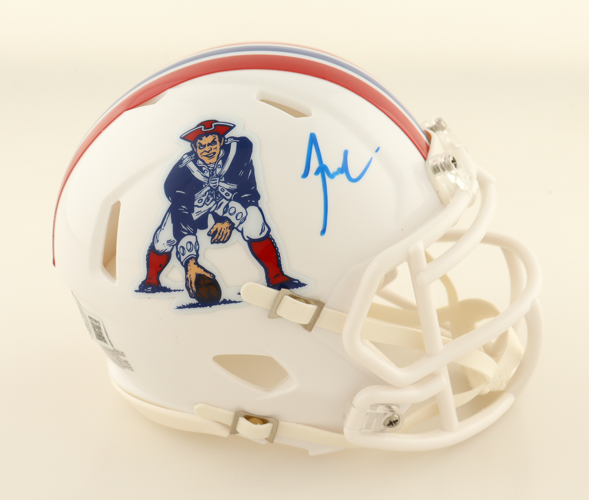 Riddell New England Patriots Throwbacl Alternate speed mini helmet. Hand-signed by Jaylinn Hawkins. See photos for more details.