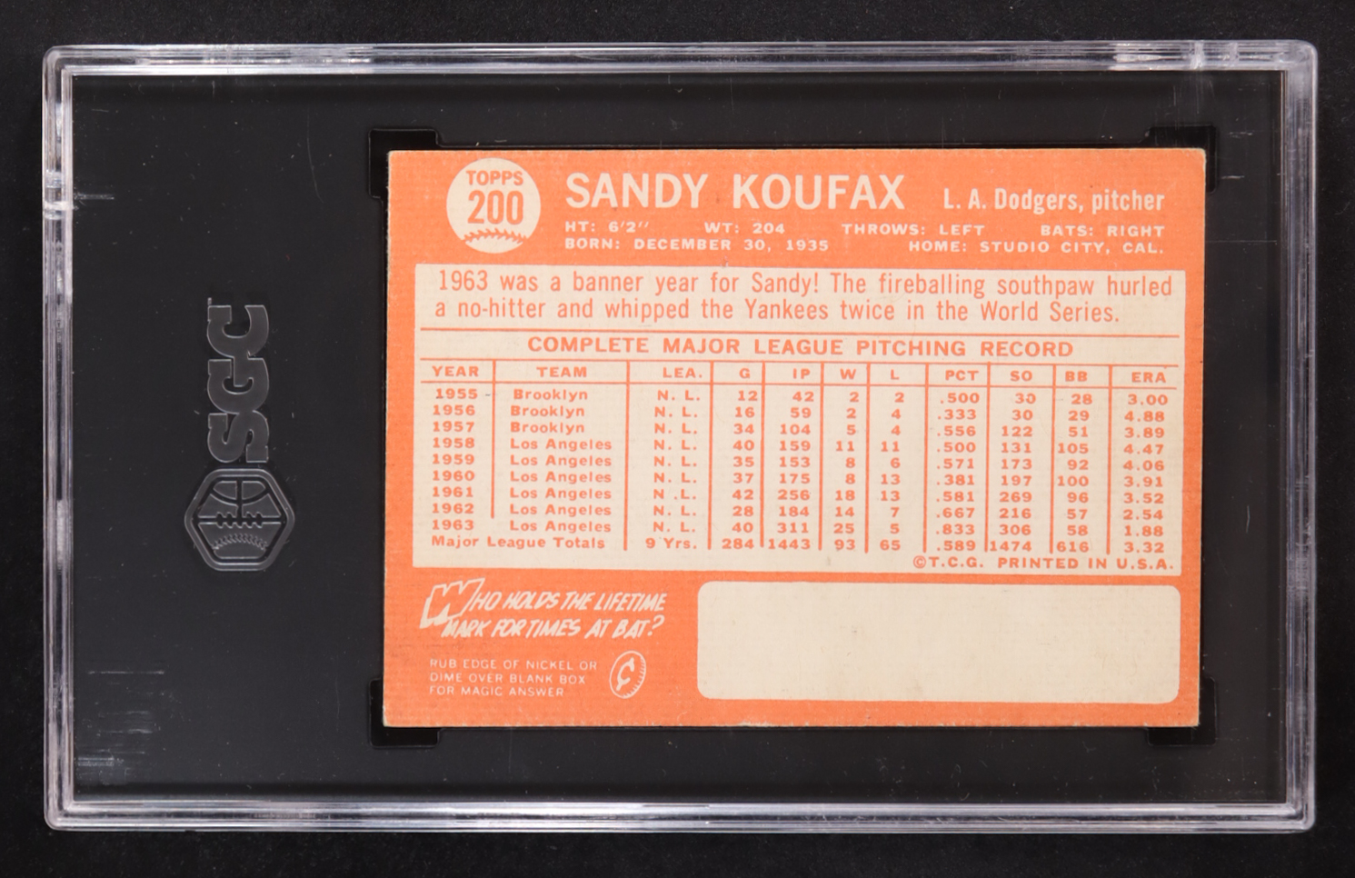 Sandy Koufax 1964 Topps #200 (SGC 3.5)