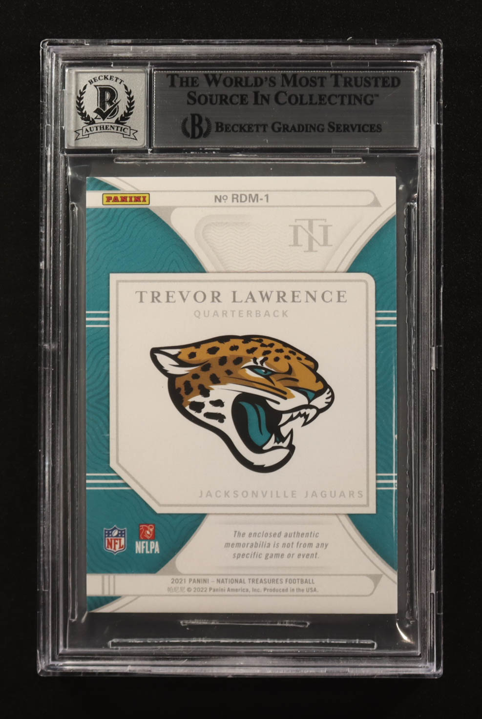 Trevor Lawrence Signed 2021 Panini National Treasures Rookie Dual Materials Purple #RDM-1 RC #22/49 (BGS | Autograph Graded BGS 10)