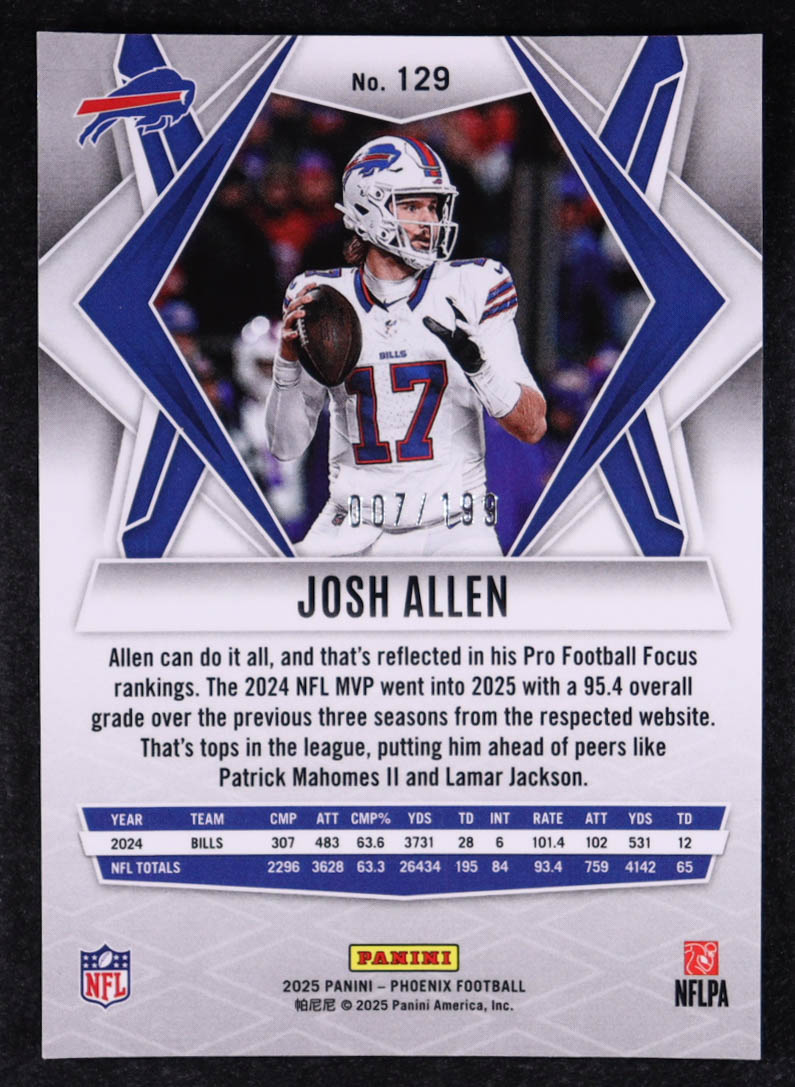 Josh Allen 2025 Panini Phoenix Blue Hyper #129 #007/199