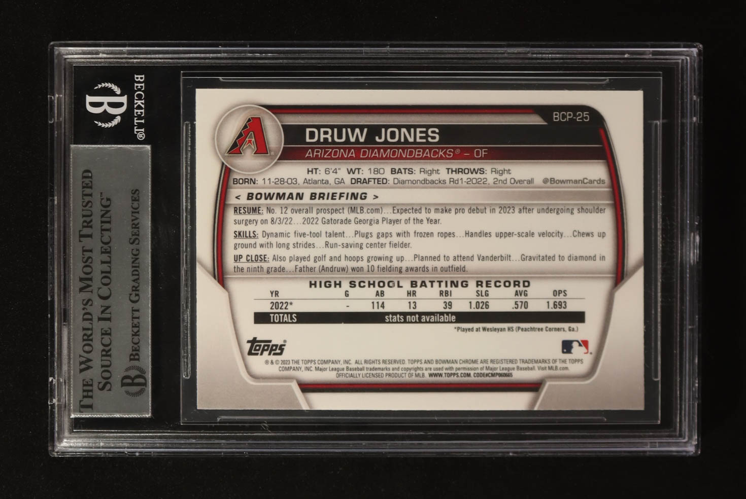 Druw Jones Signed 2023 Bowman Chrome Prospects #BCP-25 RC (BGS)