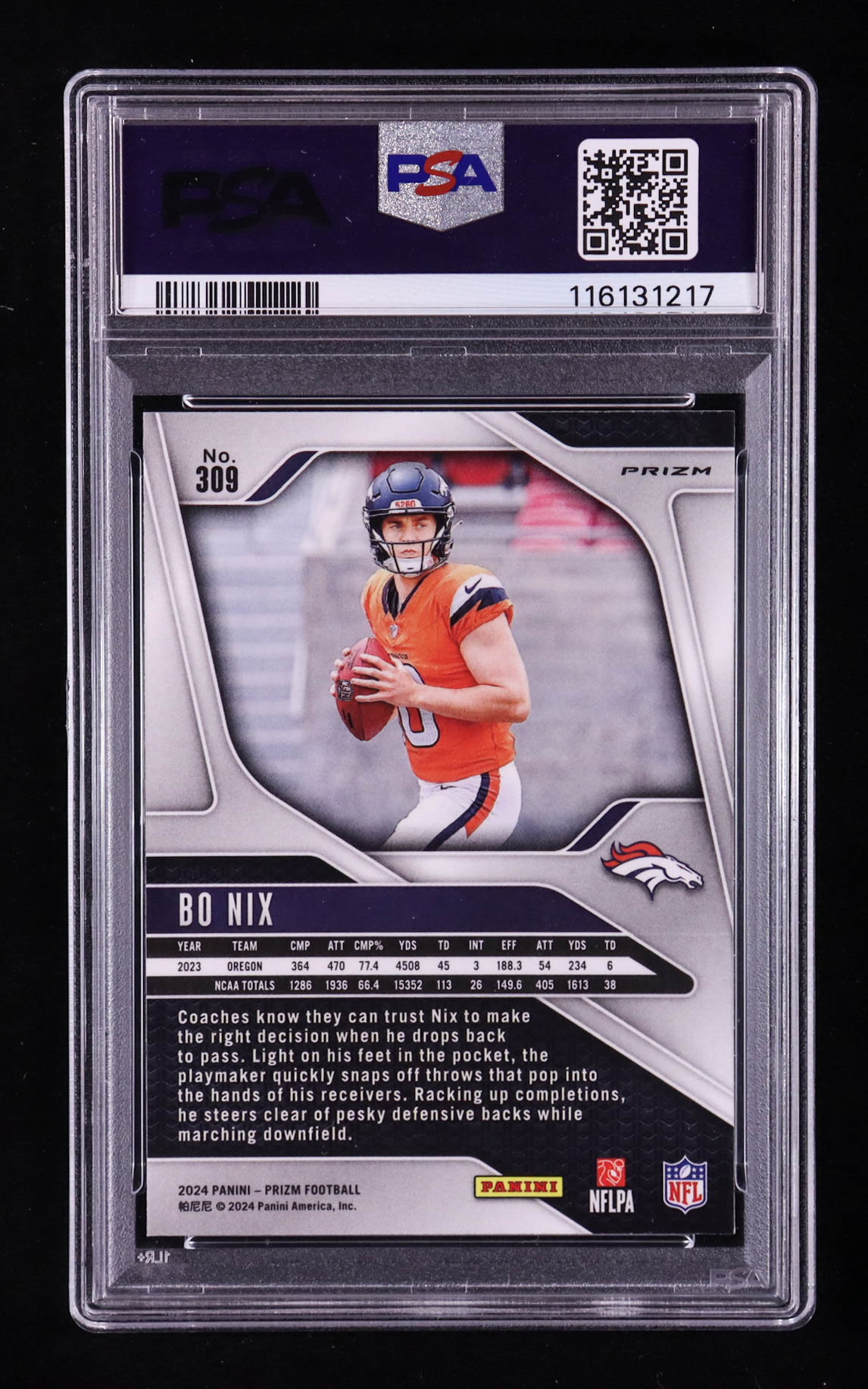 Bo Nix 2024 Panini Prizm Prizms Silver #309 RC (PSA 9)