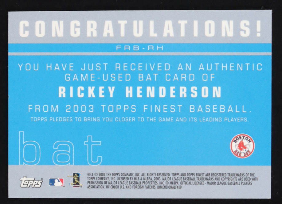 Rickey Henderson 2003 Finest Bat Relics #RH