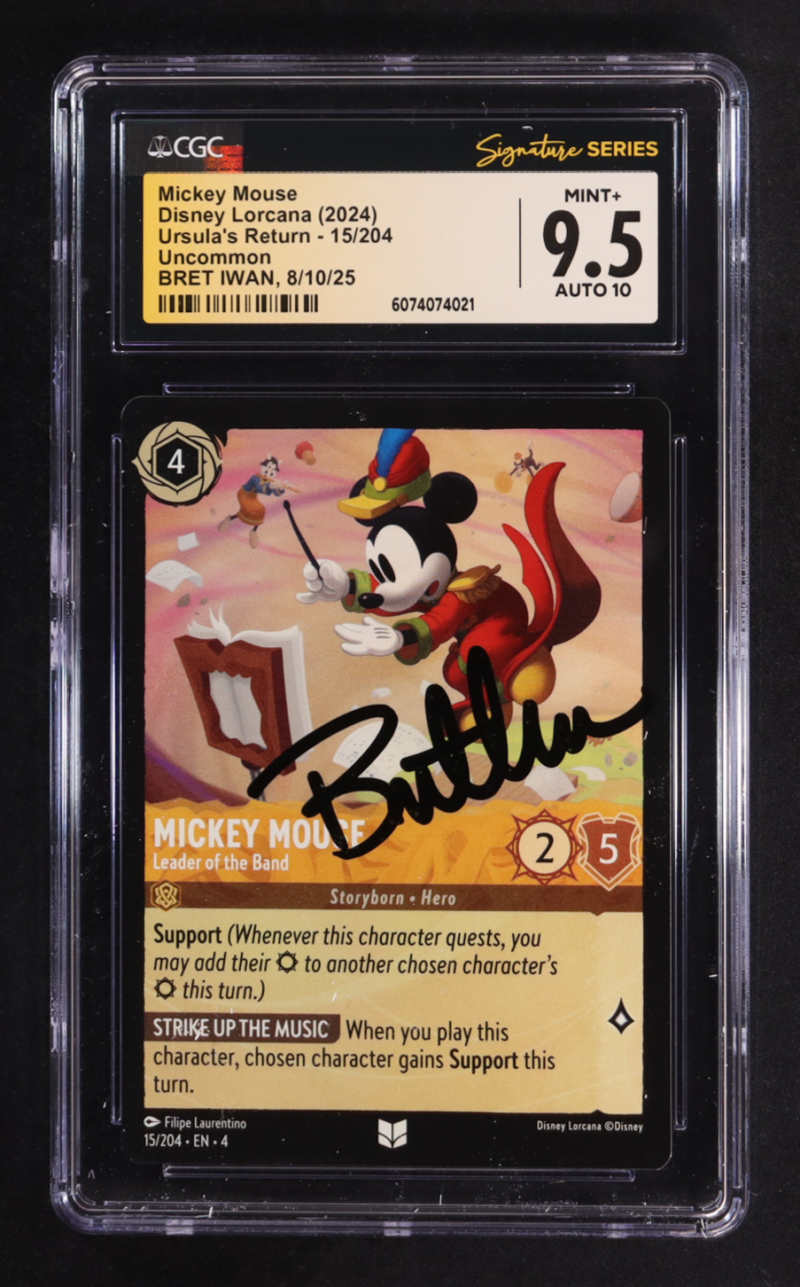 Bret Iwan Signed 2024 Disney Lorcana TCG Ursula's Return #15 Mickey Mouse - Leader Of The Band (CGC 9.5 | Auto 10)