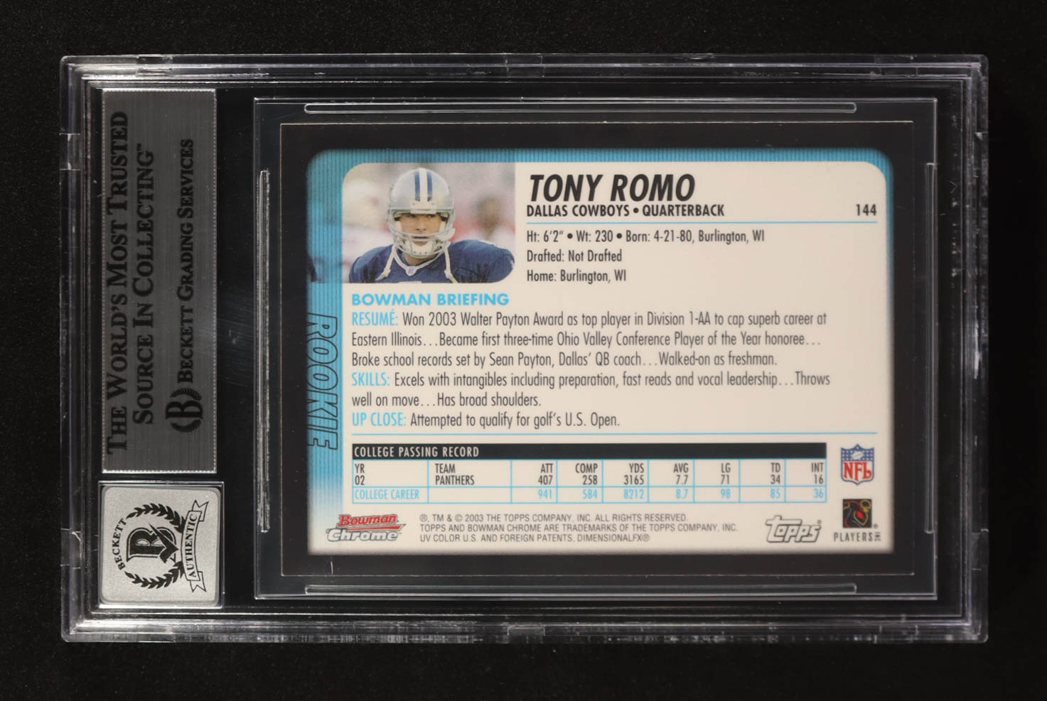 Tony Romo Signed 2003 Bowman Chrome #144 RC (BGS | Autograph Graded BGS 10)