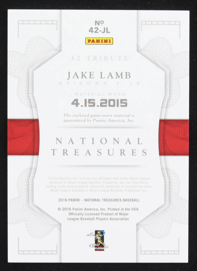 Jake Lamb 2016 Panini National Treasures 42 Tribute Materials #42JL #10/20