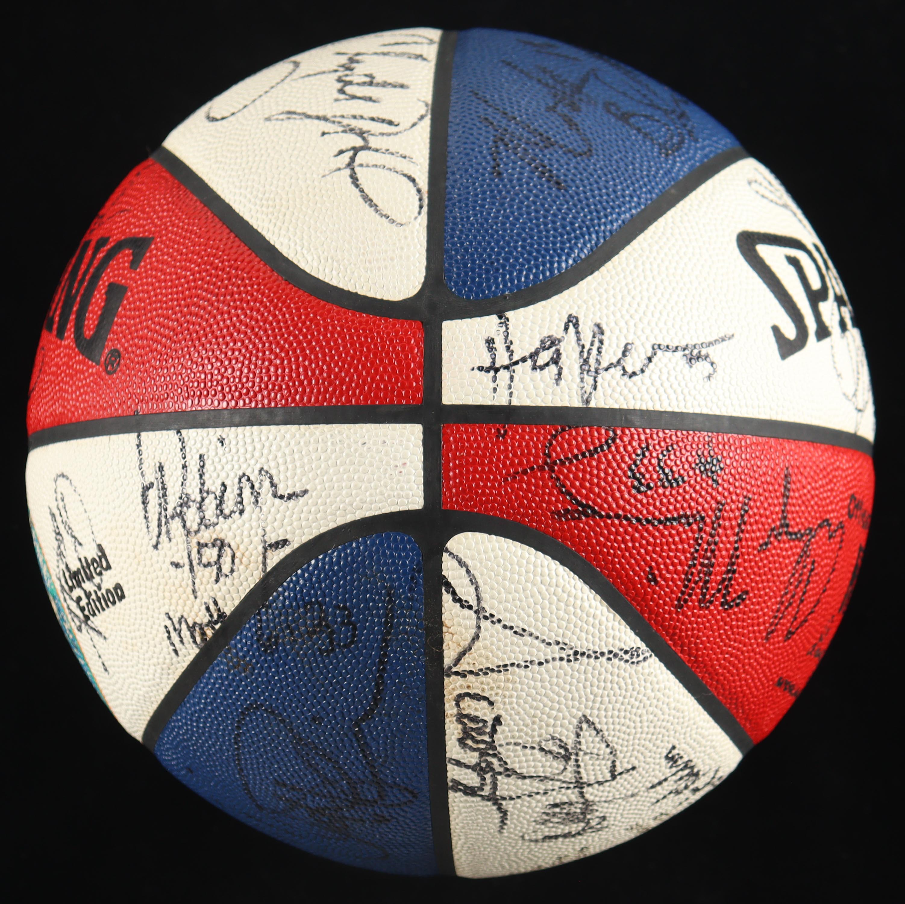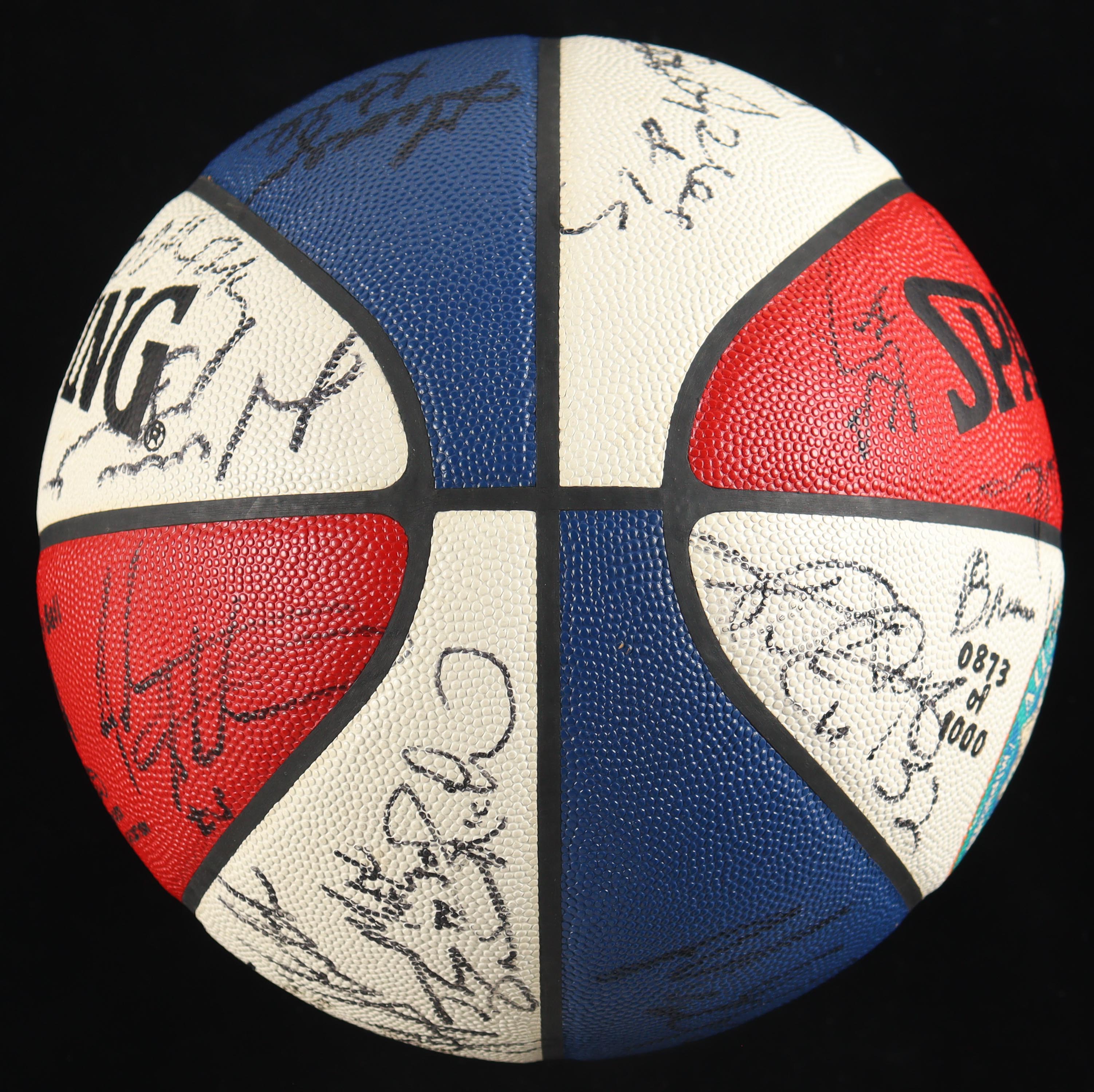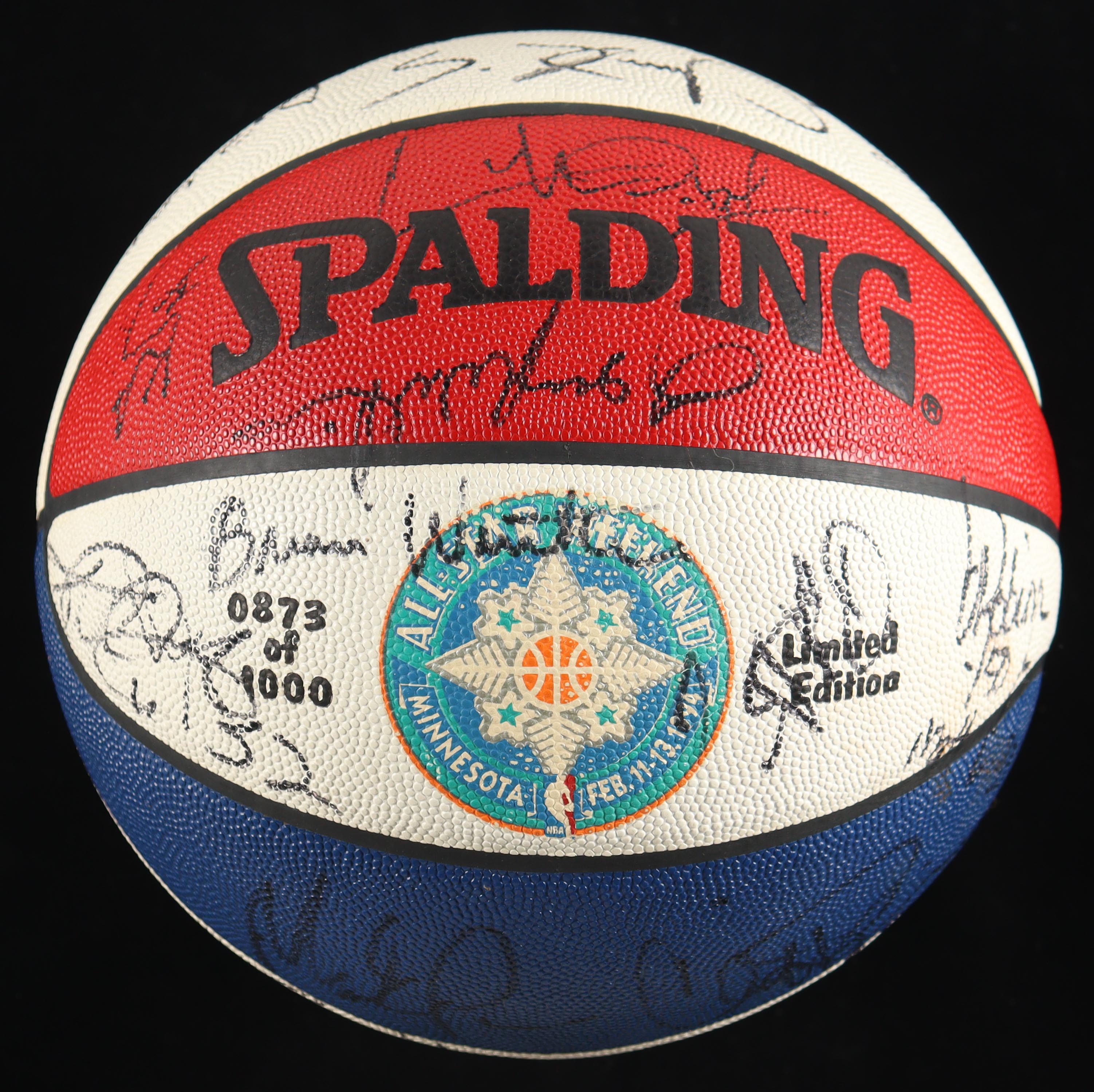 Spalding NBA All-Star Game logo basketball has been hand-signed by (28) members of the All-Star Game including Hall of Famers Shaquille O'Neal, Scottie Pippen, and John Stockton! This item is limited edition and has been numbered #873/1,000.