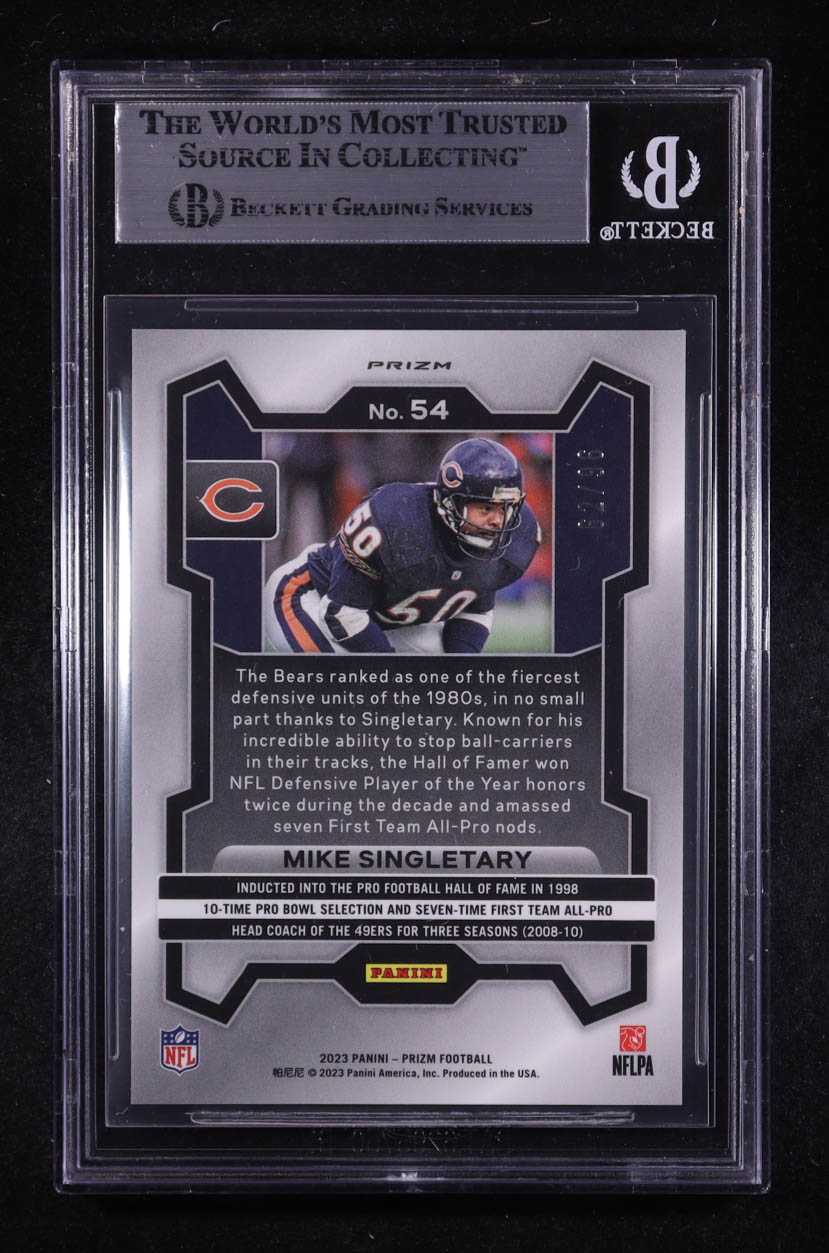 Mike Singletary Signed 2023 Panini Prizm Blue Sparkle Inscribed "HOF 98" #54 #62/96 (BGS)