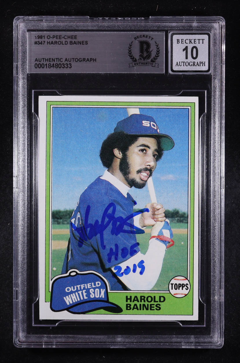 Harold Baines Signed 1981 Topps Inscribed "HOF 2019" #347 RC (BGS | Autograph Graded BGS 10)