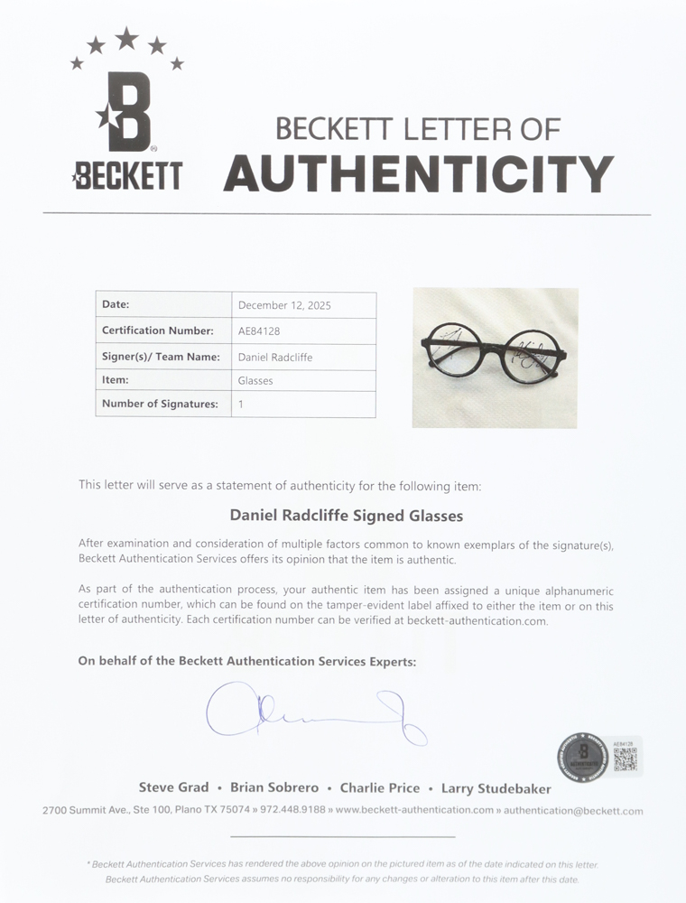 Daniel Radcliffe Signed "Harry Potter" Replica Glasses (Beckett)