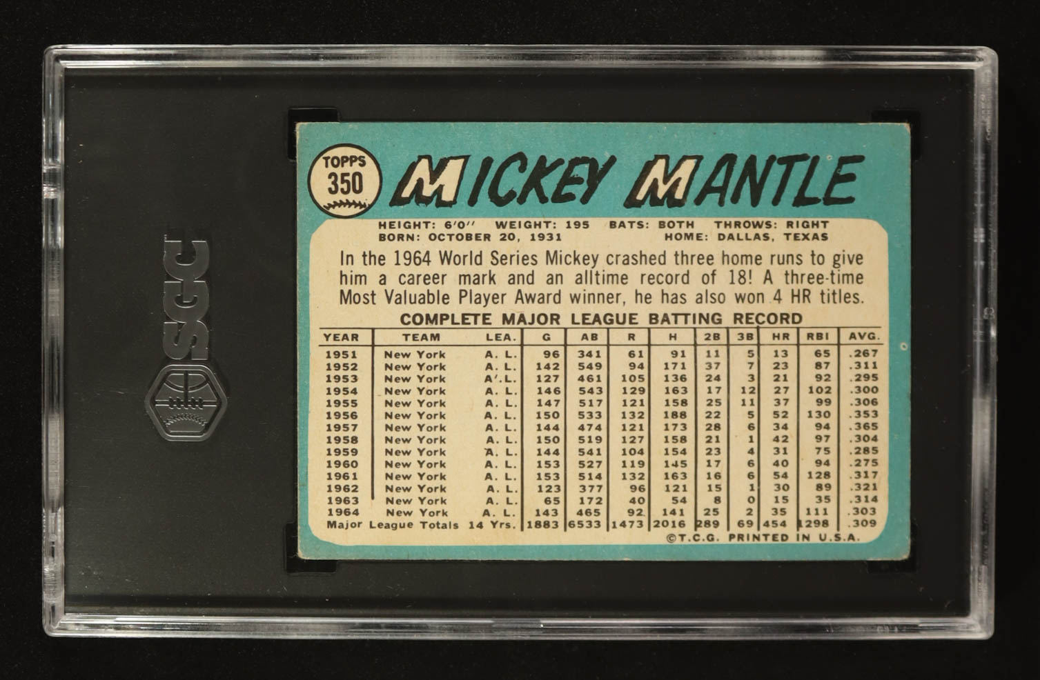 Mickey Mantle 1965 Topps #350 (SGC 4)