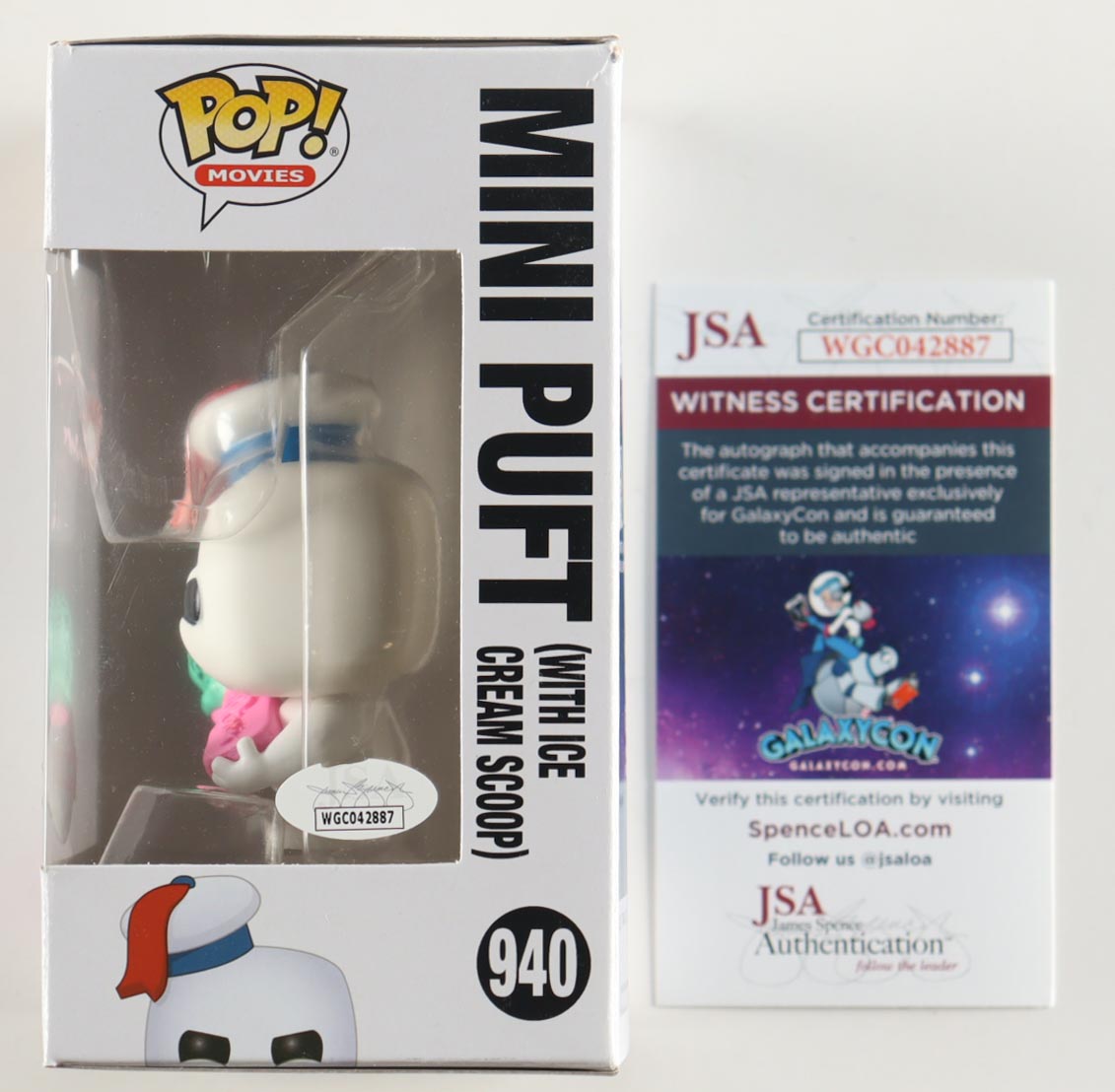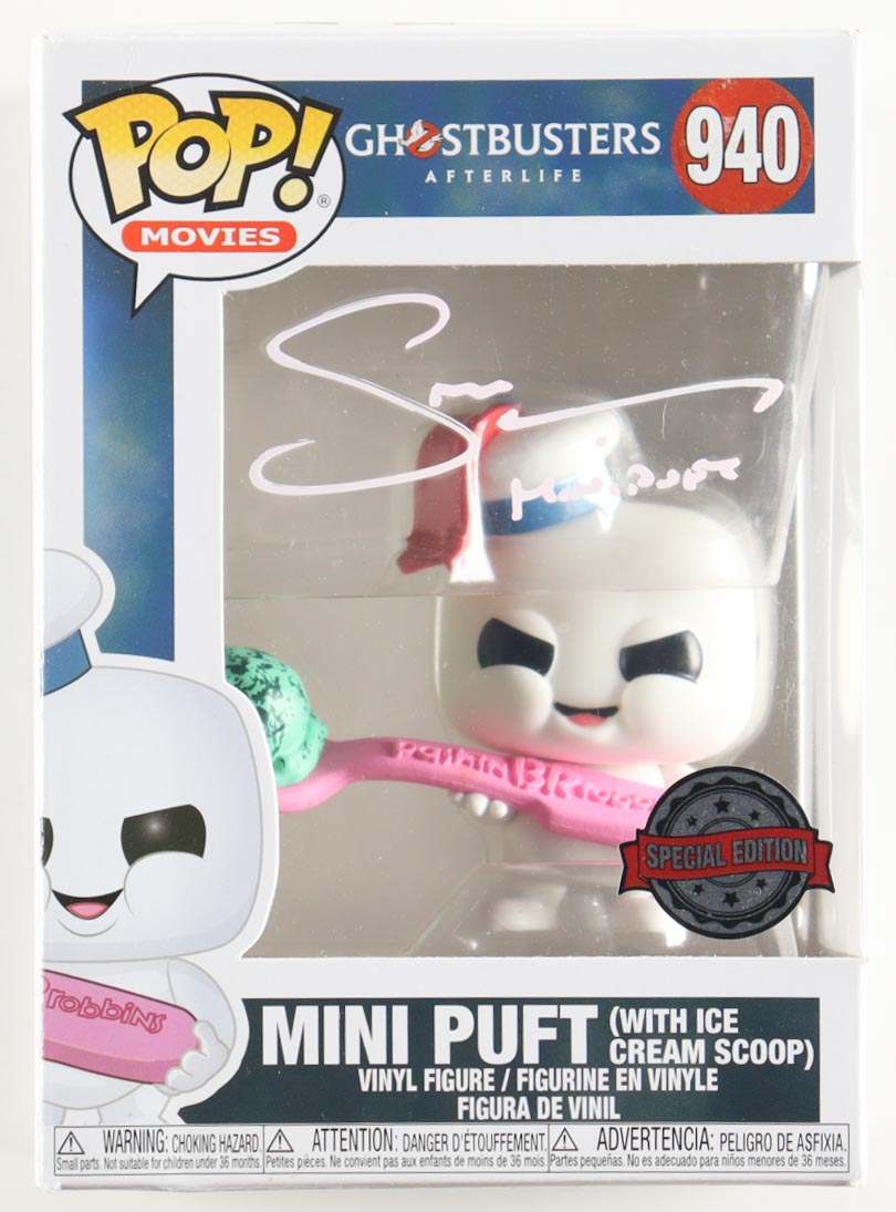 Sarah Natochenny Signed "Ghostbusters: Afterlife" #940 Mini Puft (With Ice Cream Scoop) Funko Pop! Vinyl Figure Inscribed "Mini Puft" (JSA)