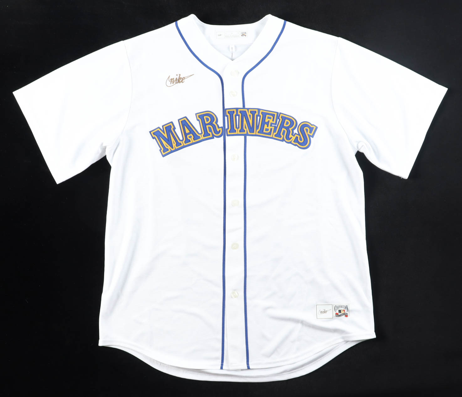 Nike Cooperstown Collection jersey. Everything is pressed on, size L. Hand-signed by Edgar Martinez (Seattle Mariners, HOF).
