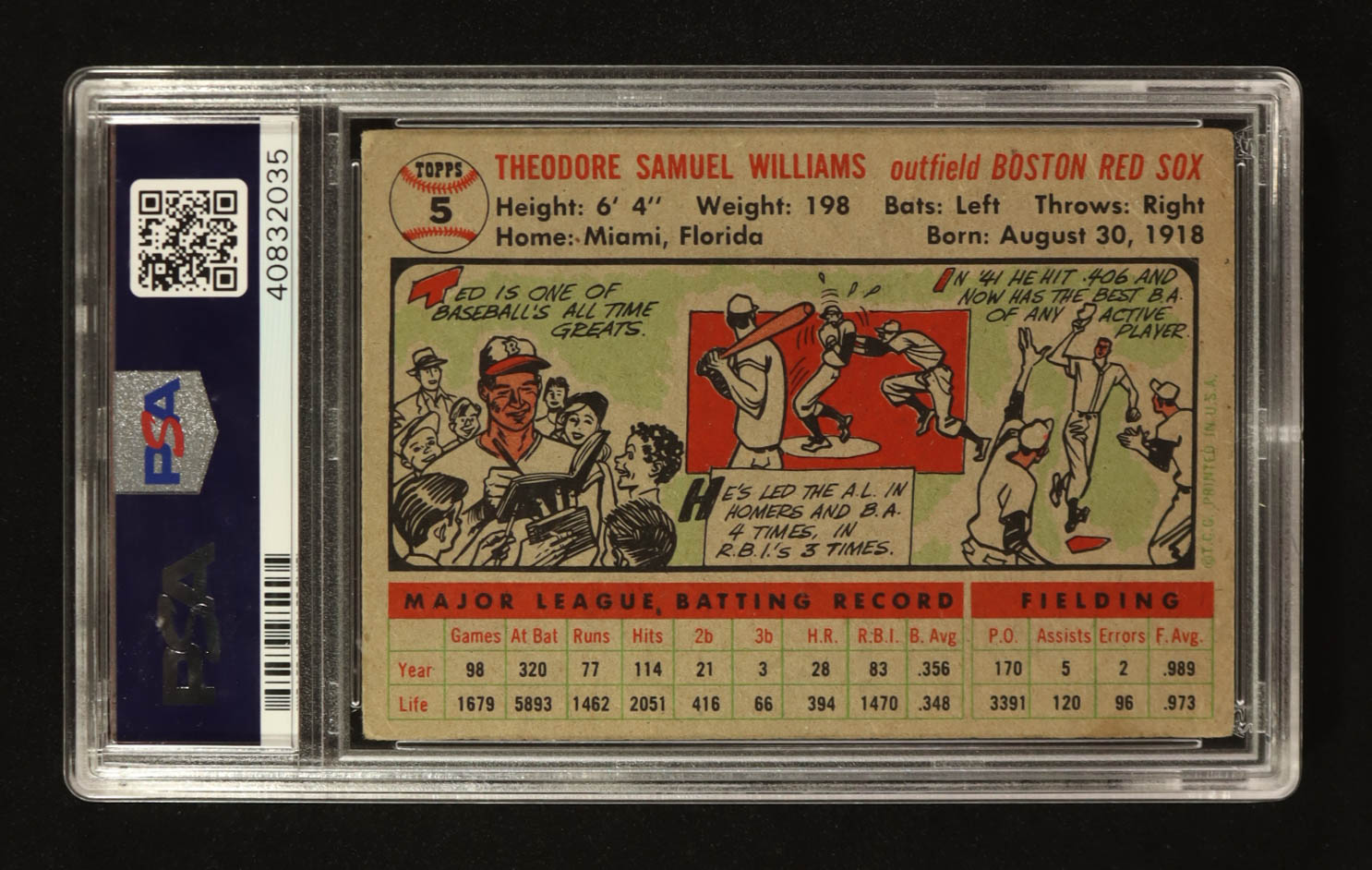 Ted Williams 1956 Topps Gray Back #5 (PSA 3)