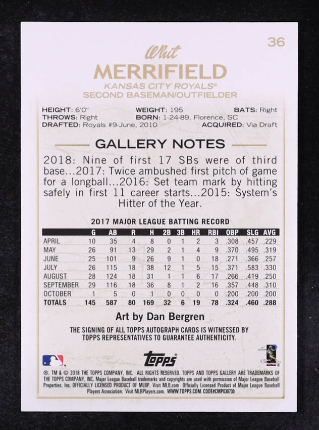 Whit Merrifield 2018 Topps Gallery Autographs #36