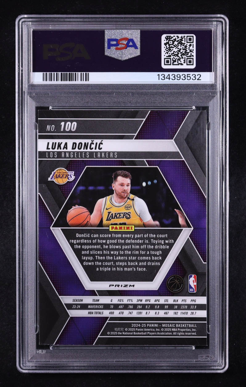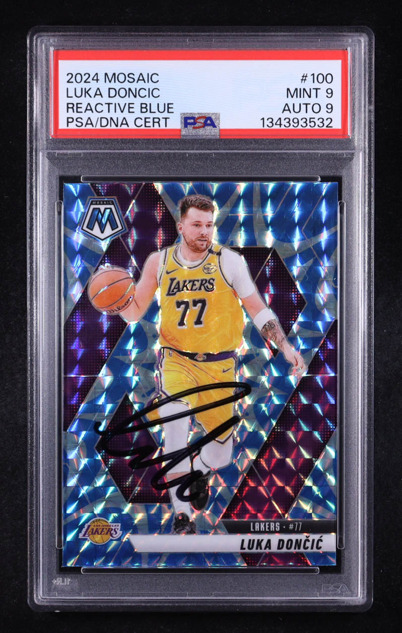 Luka Doncic Signed 2024-25 Panini Mosaic Reactive Blue #100 (PSA 9 | Autograph Graded PSA 9)