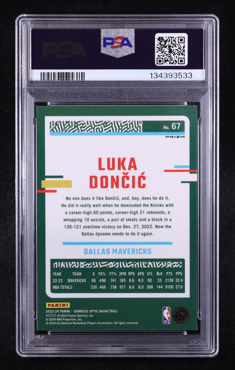 Luka Doncic Signed 2023 Panini Donruss Optic Purple #67 (PSA 8 | Autograph Graded PSA 9)