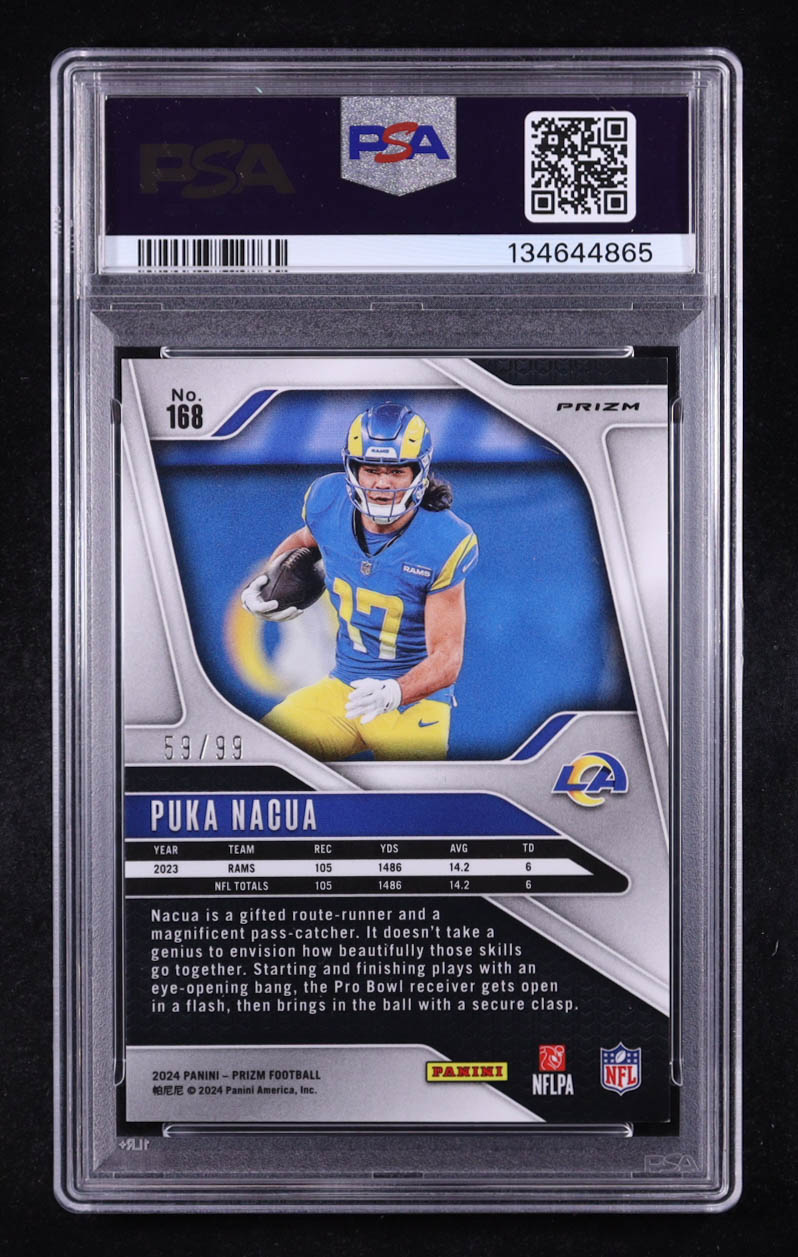 Puka Nacua Signed 2024 Panini Prizm No Huddle Blue #168 #59/99 (PSA 9 | Autograph Graded PSA 10)
