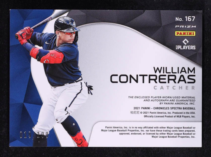 William Contreras 2021 Panini Spectra Spectra Rookie Jersey Autographs #167 #019/199 RC