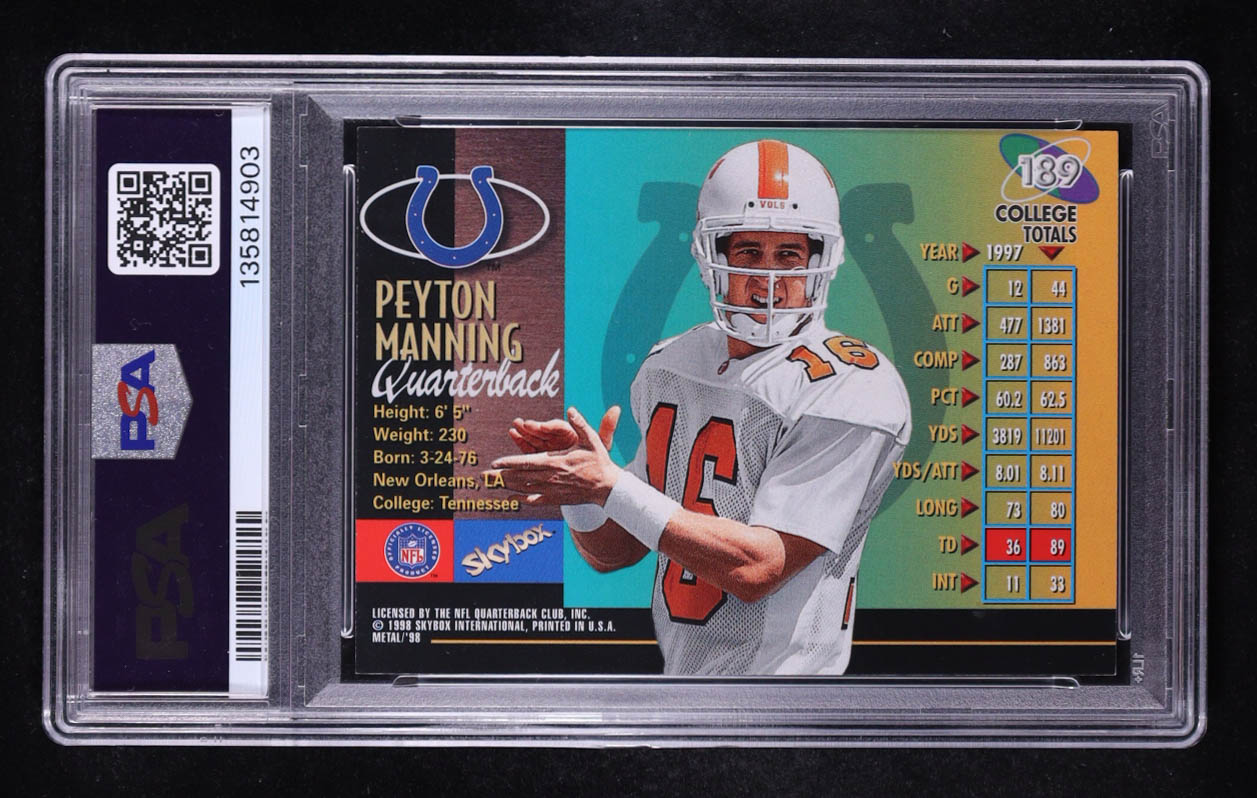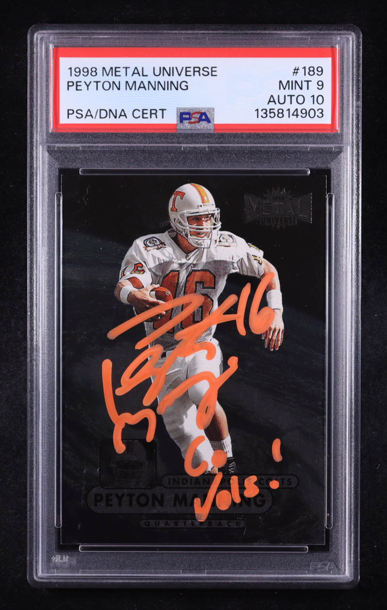 Peyton Manning Signed 1998 Metal Universe Inscribed "Go Vols !" #189 RC (PSA 9 | Autograph Graded PSA 10)