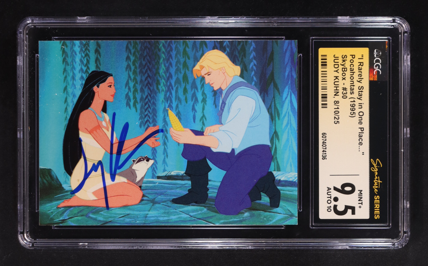 Judy Kuhn Signed 1995 SkyBox Pocahontas #30 I Rarely Stay in One Place... Until Now. (CGC 9.5 | Auto 10)