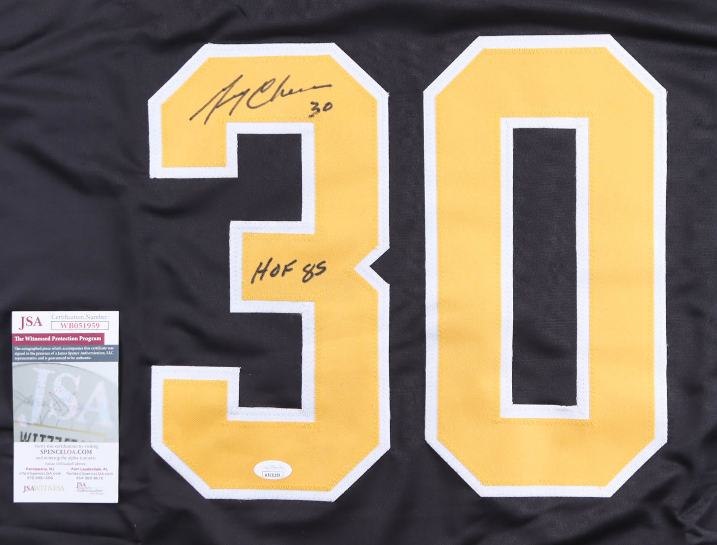 Gerry Cheevers Signed Jersey Inscribed "HOF 85" (JSA)
